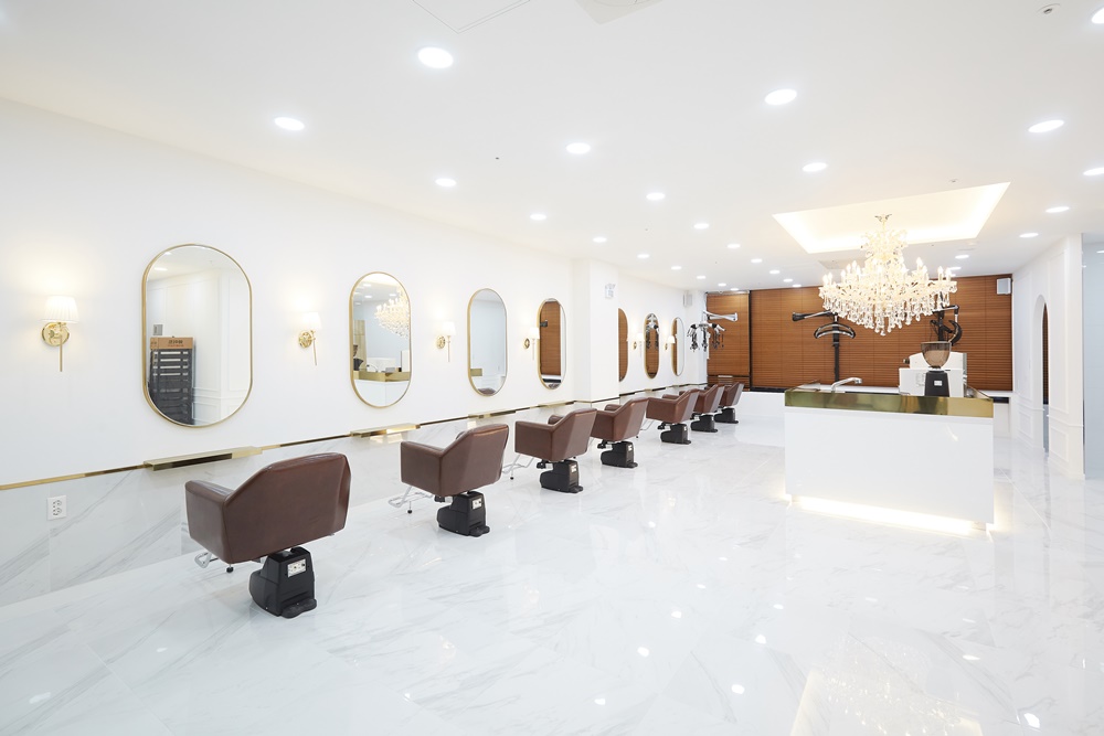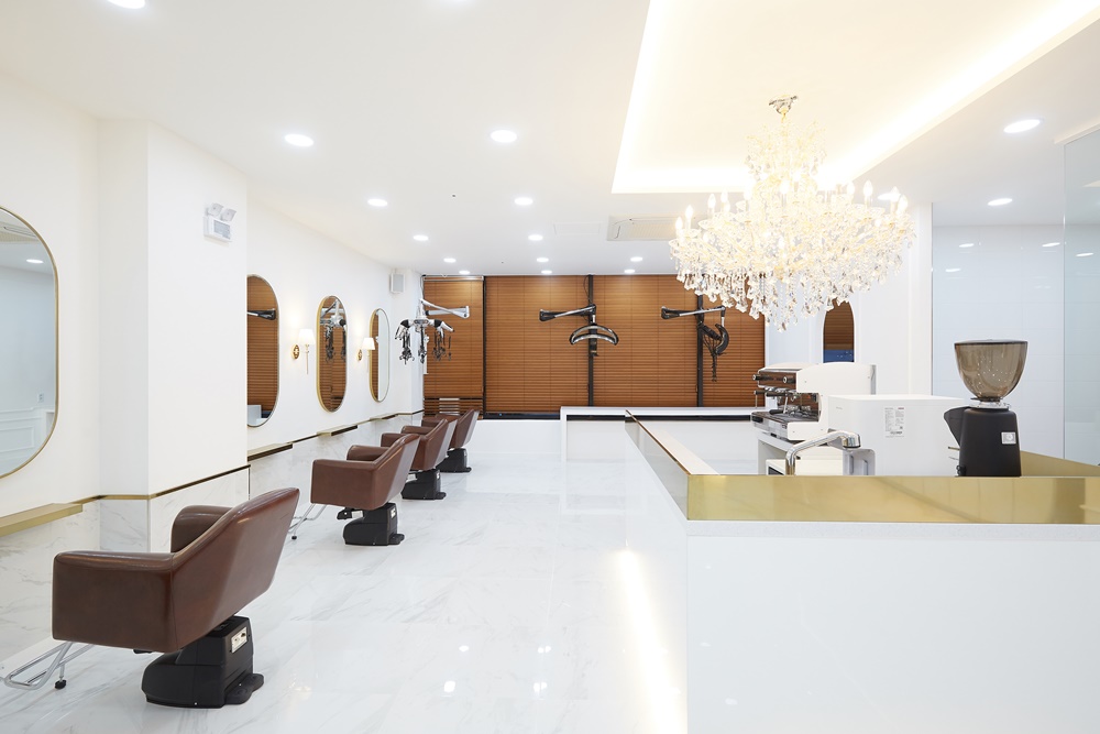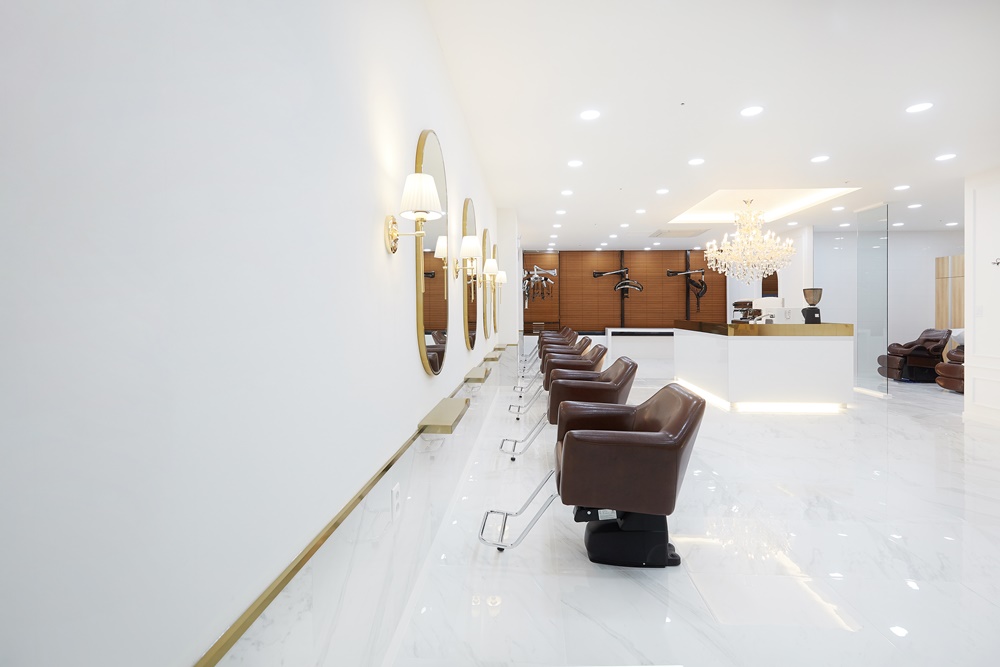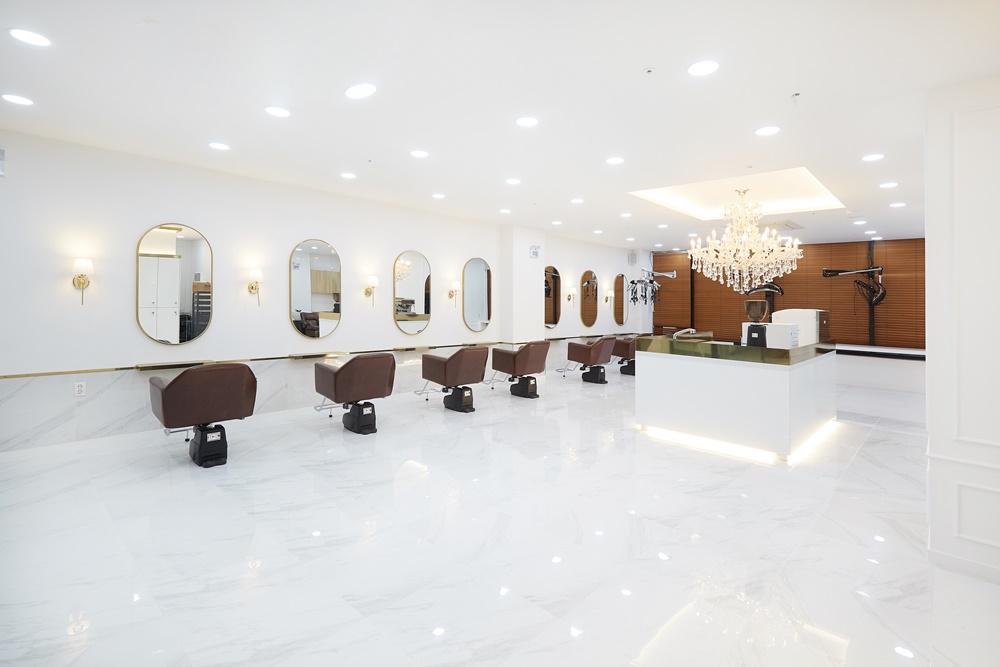 거울에 반사되는 빛이 공간을 더욱 넓어 보이게 만들어주며, 고객들의 얼굴을 더욱 화사하게 만들어준다는 장점이 있습니다.