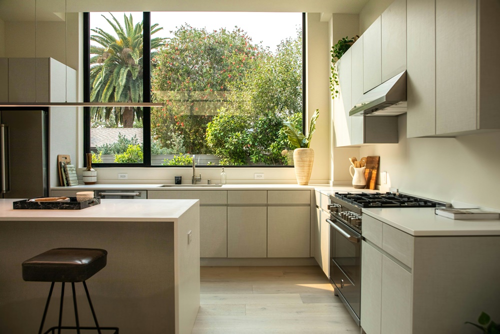 ㄱ자 주방 인테리어 상부장 제거와 미니멀한 벽면 구성