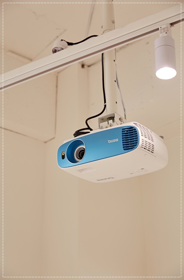 공간을 나누는 가벽을 유리로 시공하면 시선을 방해하지 않고 공간이 단절되지 않게 해 개방감을 확보할 수 있는데 여기에 패턴이 없는 바닥으로 마감하면 공간이 더욱 넓어 보이면서 연장되고 확장되는 효과가 있어 사무실 인테리어로 많이 활용되고 있습니다. 복층 공간 역시 화이트로 벽면을 마감해 공간을 더욱 넓고 화사해 보이게 했고 하얀 벽면을 스크린으로 활용할 수 있도록 프로젝터를 천장에 시공해드렸습니다.