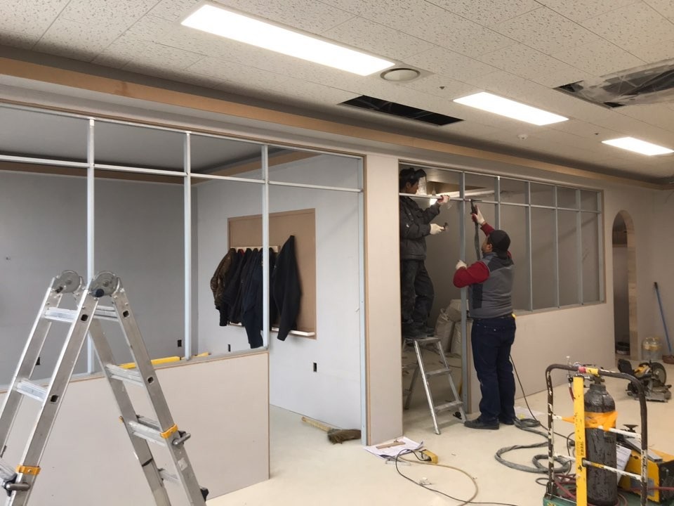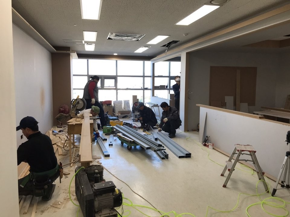 고객님과의 끊임없는 소통을 통해 디자인을 최종 확정하면 공사를 시작합니다. 사무실인테리어 시공의 첫 단계는 공간을 만드는 작업인데요, 이는 목공 작업으로 진행하고 있습니다. 목공 작업은 레이아웃을 만드는 구조 작업과 디자인을 구현하는 치장 작업이 있습니다.