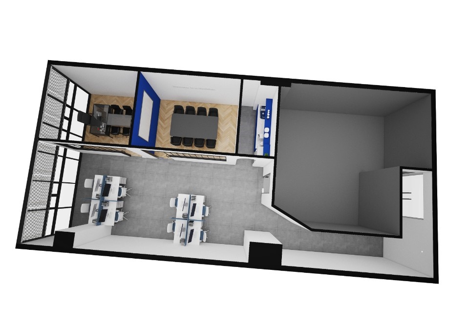 내부도 진입하는 동선을 따라가면 사무공간, 탕비실, 회의실, 대표실로을 연결됩니다. 전면창으로 들어오는 자연광을 공유하고 길고 좁은 공간을 효율적으로 활용하기 위해 사무공간은 오픈형으로 시공했습니다.