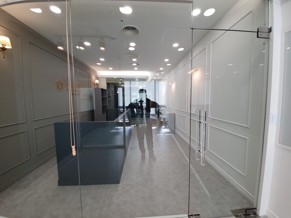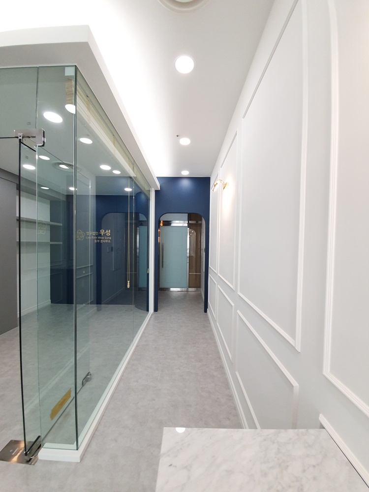내부로 진입하는 복도는 유리 가벽을 활용해 계획한 동선으로 가벽을 잘 활용한다면 공간 분리와 디자인이라는 두가지 요소를 모두 충족시킬 수 있습니다.