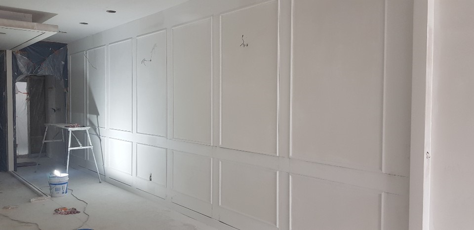 알판작업이란 합판을 배열해 경계를 나누고 모양을 내는 작업으로 디자인을 구현하는 밑그림 작업이라고 할 수 있는데요, 목공 작업에서 치장 작업에 속하는 공정입니다. 목공 작업을 많이 진행할 수록 공사비용은 높아지지만 그만큼 인테리어적 효과가 있기 때문에 얼마나 꼼꼼하게 작업할 수 있느냐에 따라 퀄리티가 달라진답니다.
