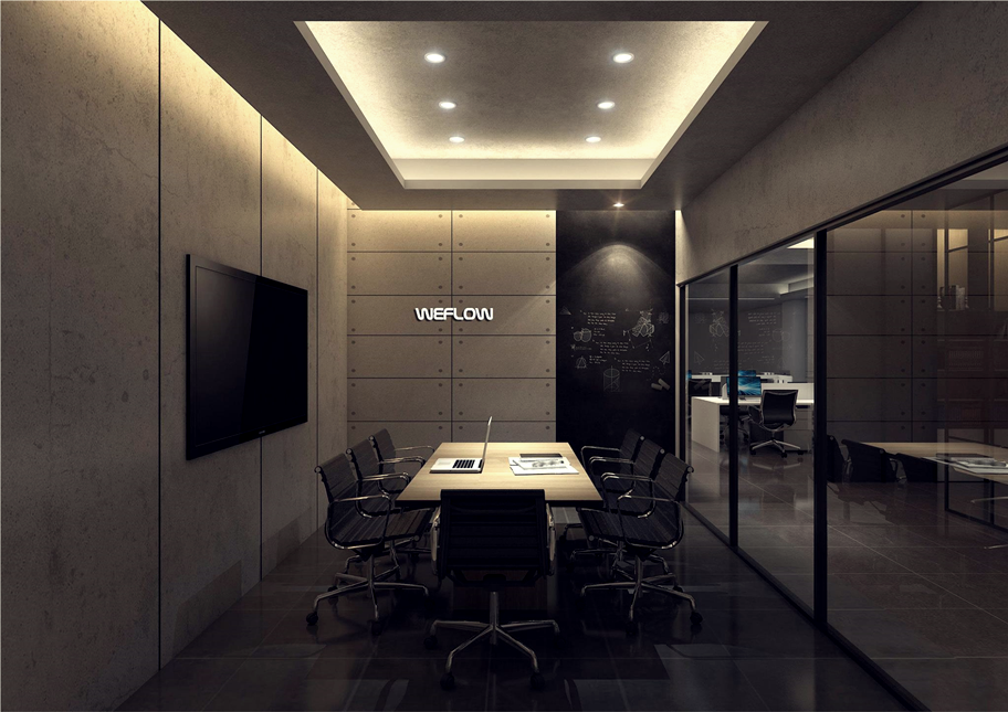 마지막으로 보여드릴 회사 사무실 인테리어로는 회의실 공간입니다. 천장은 우물형 디자인에 조명을 더하여 입체감을 높였으며 벽면과 천장은 질감이 느껴지는 디자인 타일을 연출하여 고급스럽게 연출하였습니다. 그리고 회의실 공간이 답답해 보이지 않도록 출입구 쪽 벽면은 개방감 있게 유리 부스로 나누어 설계한 모습 확인해 보실 수 있습니다. 회사 사무실 인테리어 컨셉에 맞추면서 공간의 특성을 고려한 설계로 완성도가 높아진 측면 확인해 보실 수 있습니다.