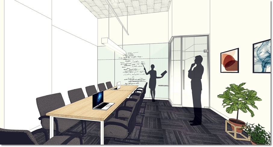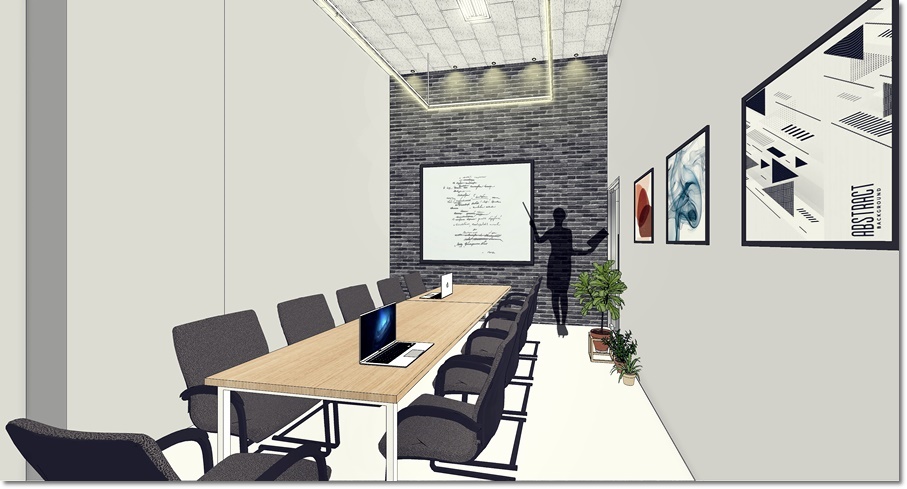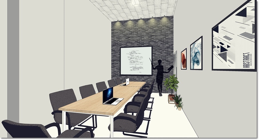 회의실 공간 디자인입니다. 공용 사무실과 통일성을 이루면서 회의실이라는 영역성을 부여하는 디자인을 제안드렸는데 고객님께서 다양한 분위기의 여러 시안을 원하셔서 모던 컨셉트, 빈티지 컨셉트를 작업해 제공해드렸습니다.