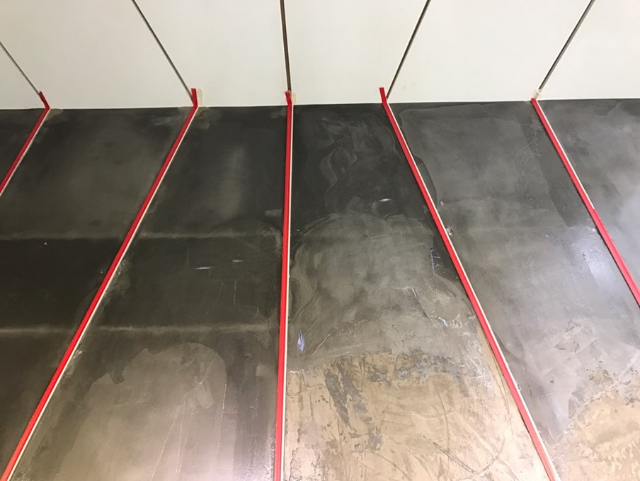 에폭시 바닥의 기본이 되는 셀프 레벨링 시공을 위해 기존 바닥을 보수해 크랙은 메꾸고 단차를 없앤 후 전체적으로 프라이머 작업을 진행해 접착력을 높여 깔끔한 마감이 될 수 있도록 했습니다.