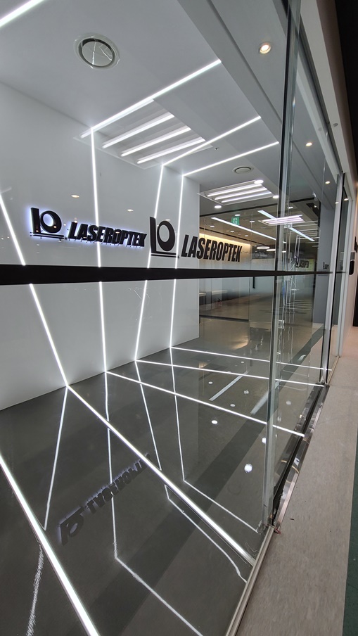 시공이 완료된 입구 파사드입니다. 블랙과 화이트로 심플하면서 모던한 분위기에 빛과 사선을 조합한 미래형 디자인으로 제조업은 물론 모든 업종에도 활용할 수 있지만 디자인력이 뒷받침되지 않는다면 다순히 따라하거나 표절이 될 수밖에 없으므로 반드시 전문업체에 의뢰하시는 것이 좋습니다.