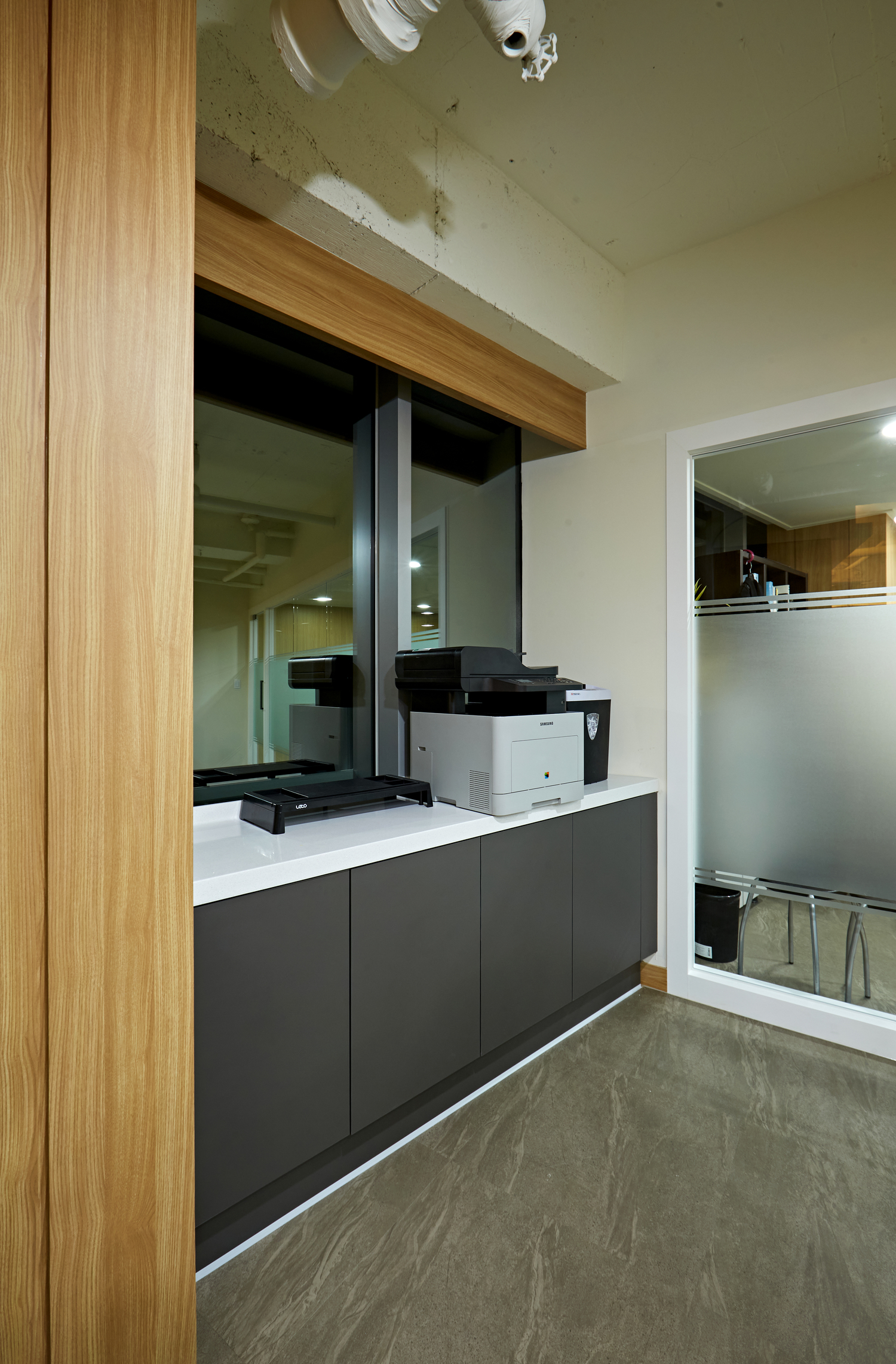 이번 현장의 포인트는 편안하고 따뜻한 분위기였는데요. 아늑하면서도 사무 공간을 둘러싼 하단에 화분으로 자연친화적인 분위기까지 함께 연출하였습니다.