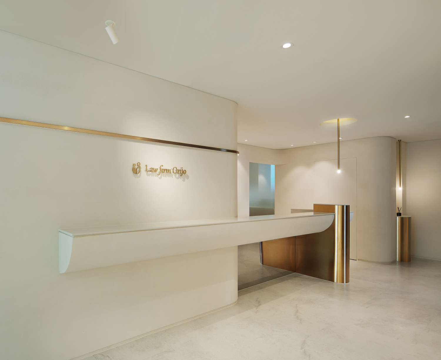 그렇다면 실제 강남로펌인테리어현장을 소개해드리도록 하겠습니다. 이번에 916디자인과 함께하게 된 법무법인 온조는 여러분들의 삶을 따뜻하게 만들어드리겠다는 사명을 가지고 있는데요. 그래서 더욱 더 인테리어에 해당 분위기를 녹여내기 위해서 화이트와 골드 컬러 그리고 곡선을 사용한 부드러운 이미지를 내포하게 되었습니다.