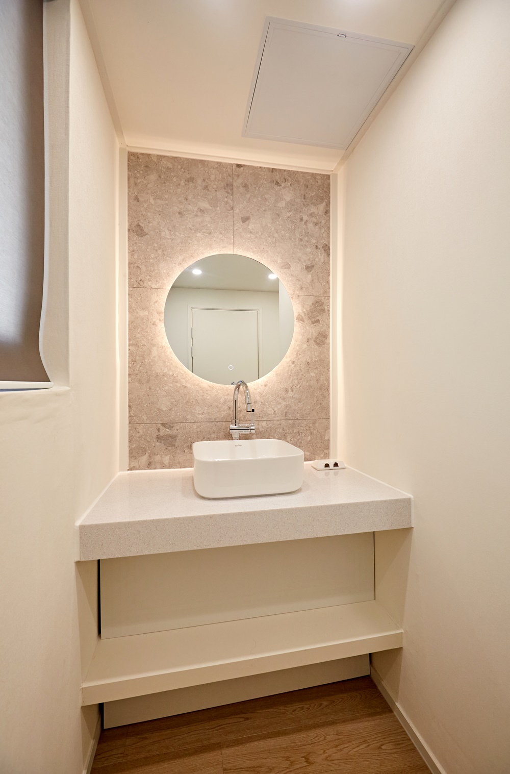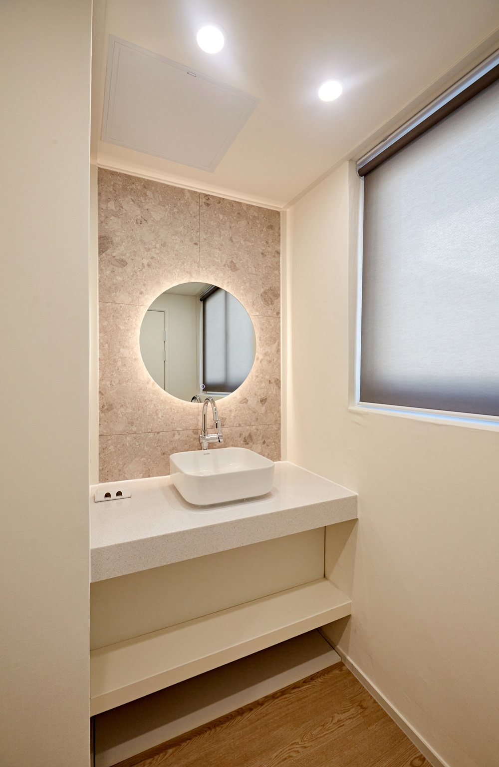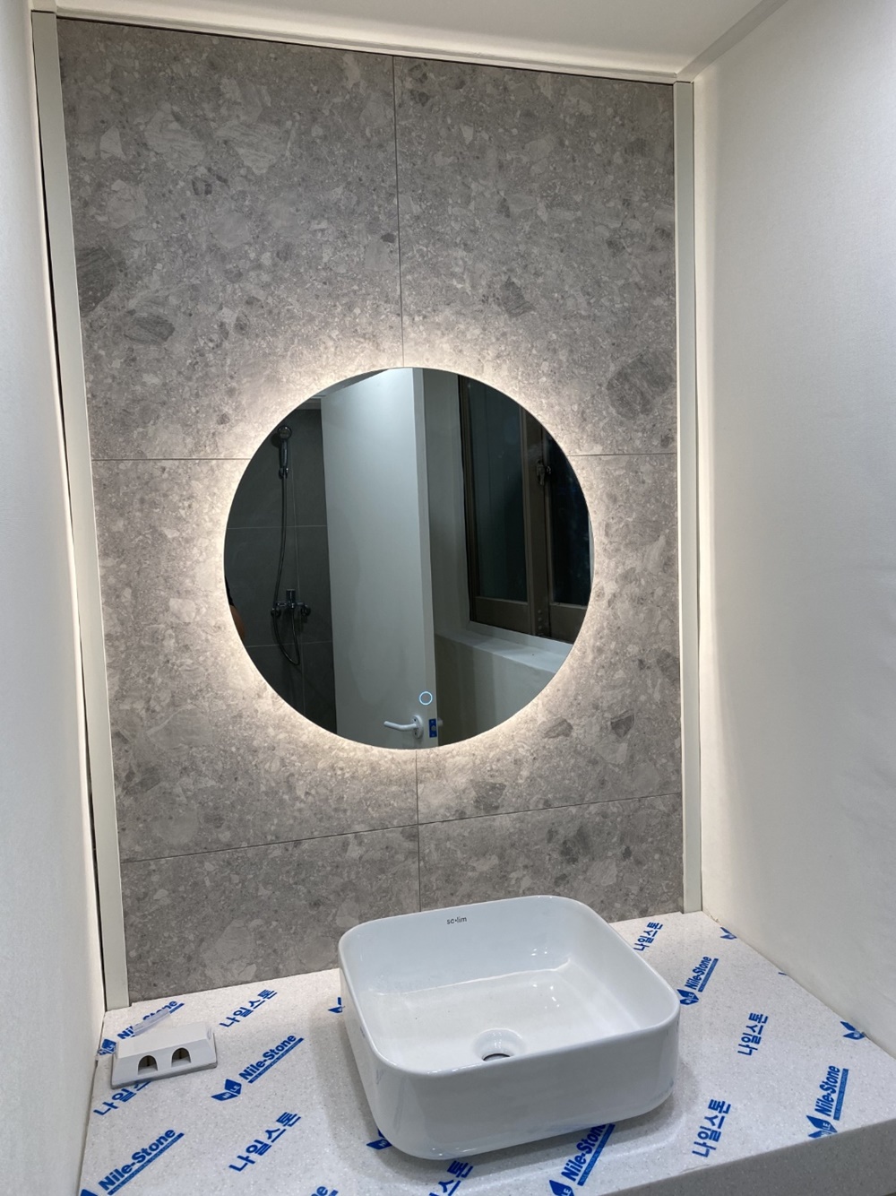 그리고 거울 주변에는 스팟 조명을 설치하여 고객이 자신의 모습을 더욱 선명하게 볼수 있도록 하는 것도 좋은 방법입니다.