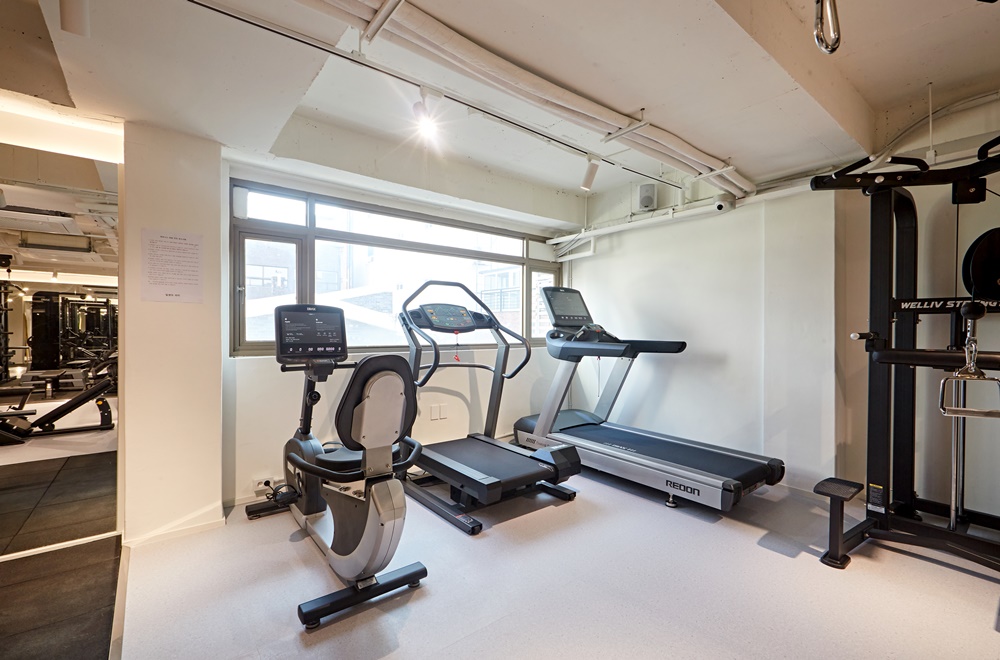 일반적인 헬스장이라면 유산소 운동 기구와 근력 운동 기구를 적절히 배치해야 하며, PT 전문 헬스장이라면 개인 트레이닝 공간을 충분히 확보해야 합니다.