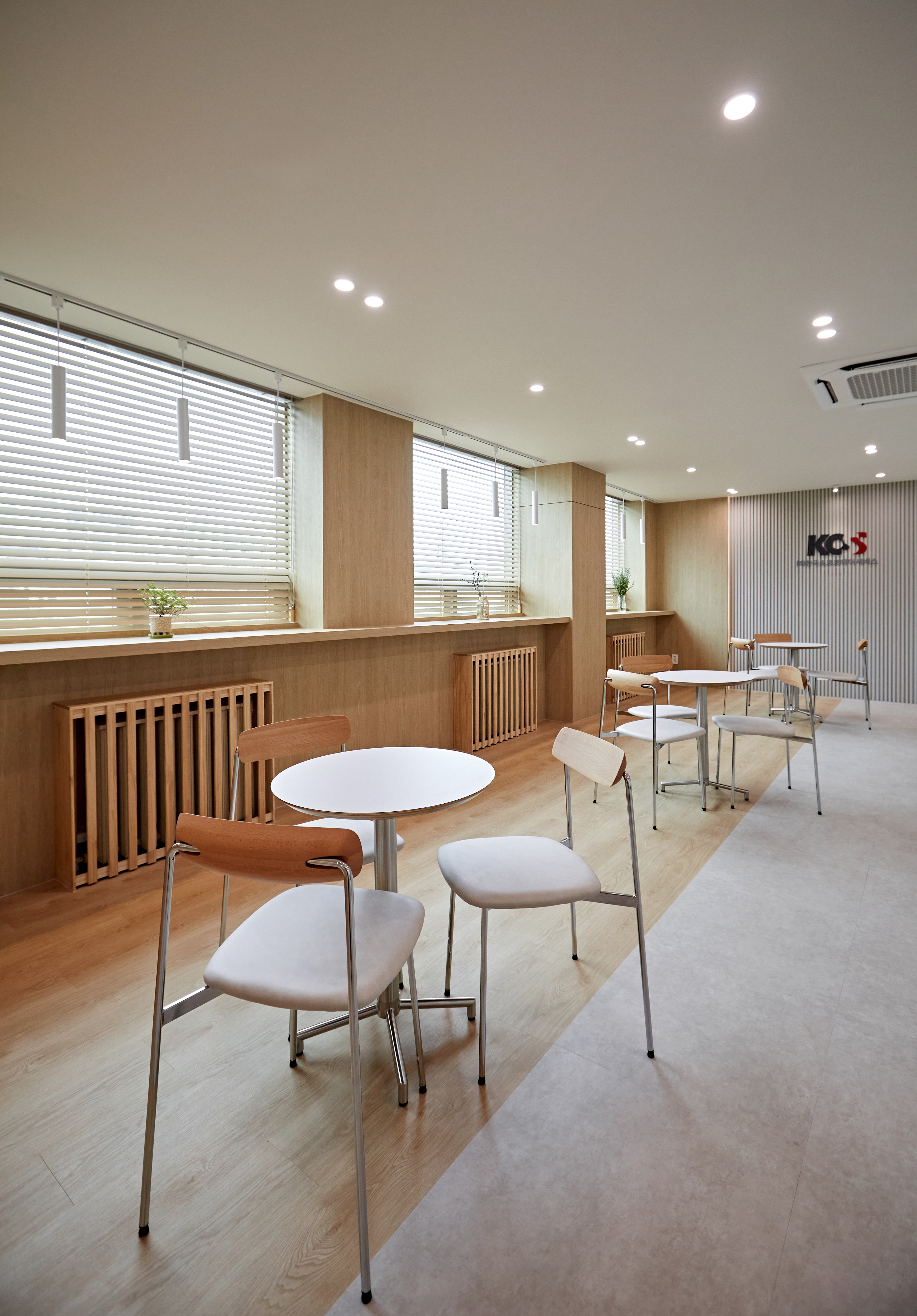 메인 라운지는 카페테리아 형식으로 구성하여 직원들이 자유롭게 소통하고 휴식을 취할 수 있도록 설계했습니다.