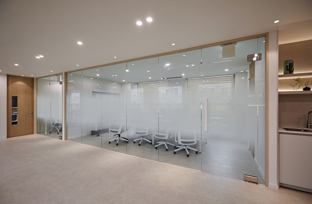 업무 공간과 회의실은 개방감을 유지하면서도 프라이버시를 보호할 수 있도록 유리 파티션을 적극 활용했습니다.