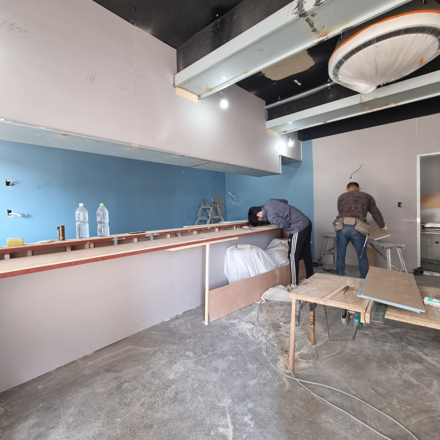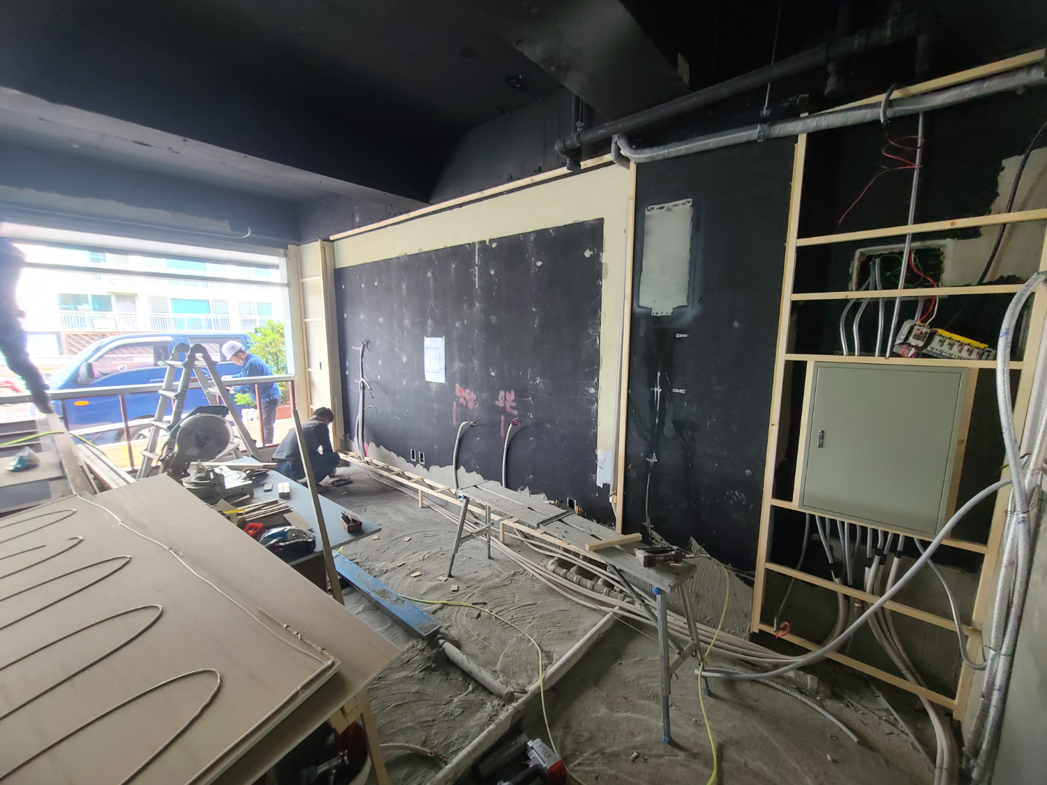 먼저 철거 작업부터 깔끔하게 진행을 했습니다. 철거 후에는 제안 드렸던 설계에 맞춰 주방 공간을 만들었습니다. 음식점이라는 업종의 특성상 수도와 배관 작업이 필수적이었습니다. 특히, 이번 현장에서는 화장실까지 인테리어 시공을 진행 했기 때문에 많은 부분을 꼼꼼하게 신경을 썼습니다.