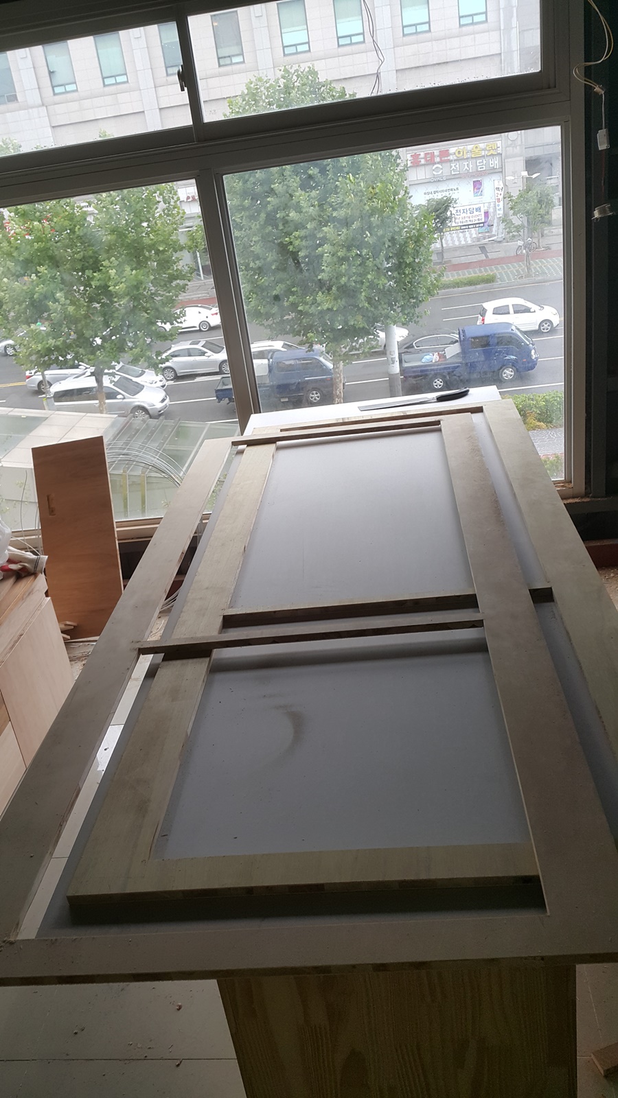 목재로 틀을 구성하고 그 위에 추가 작업을