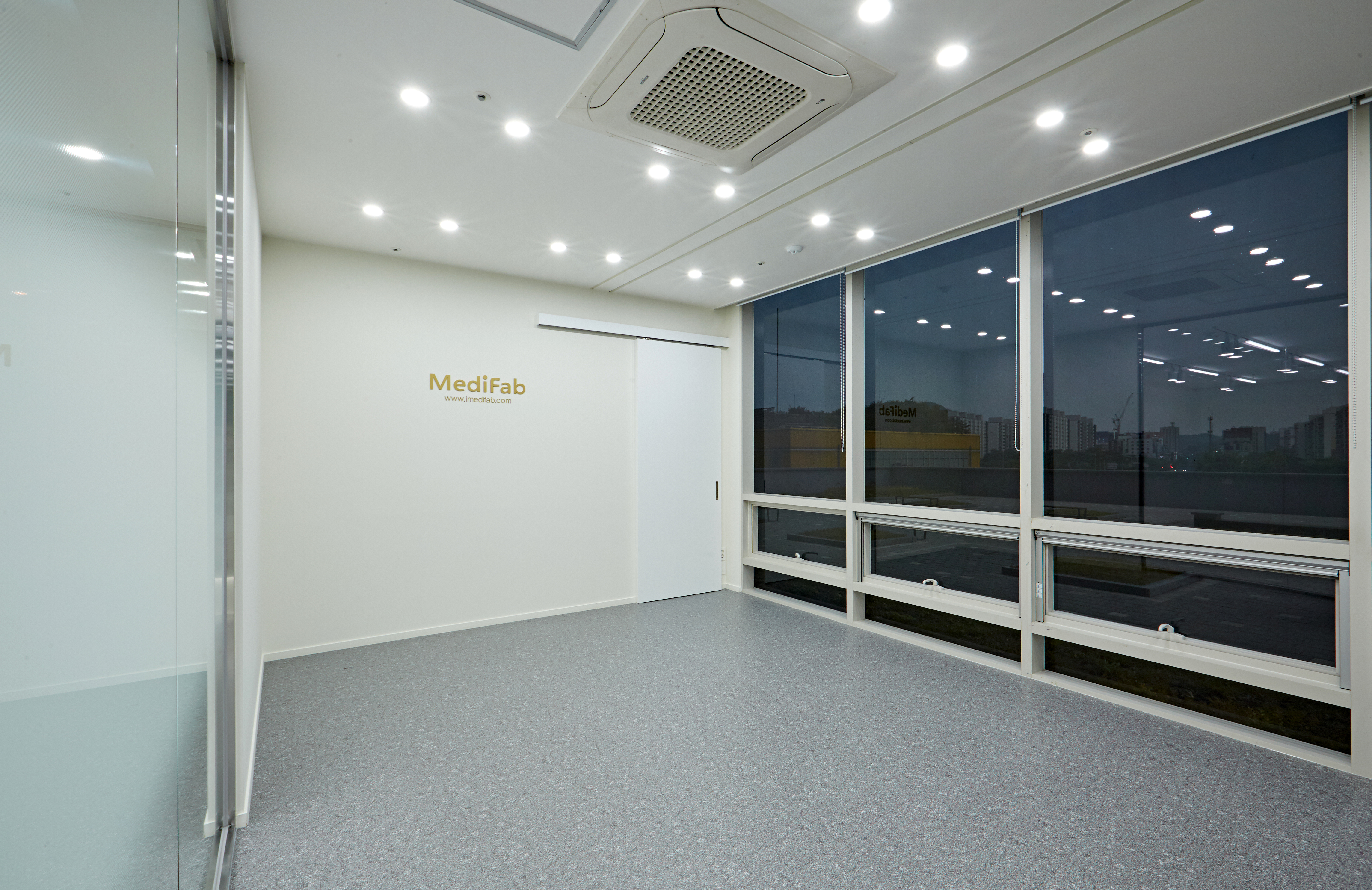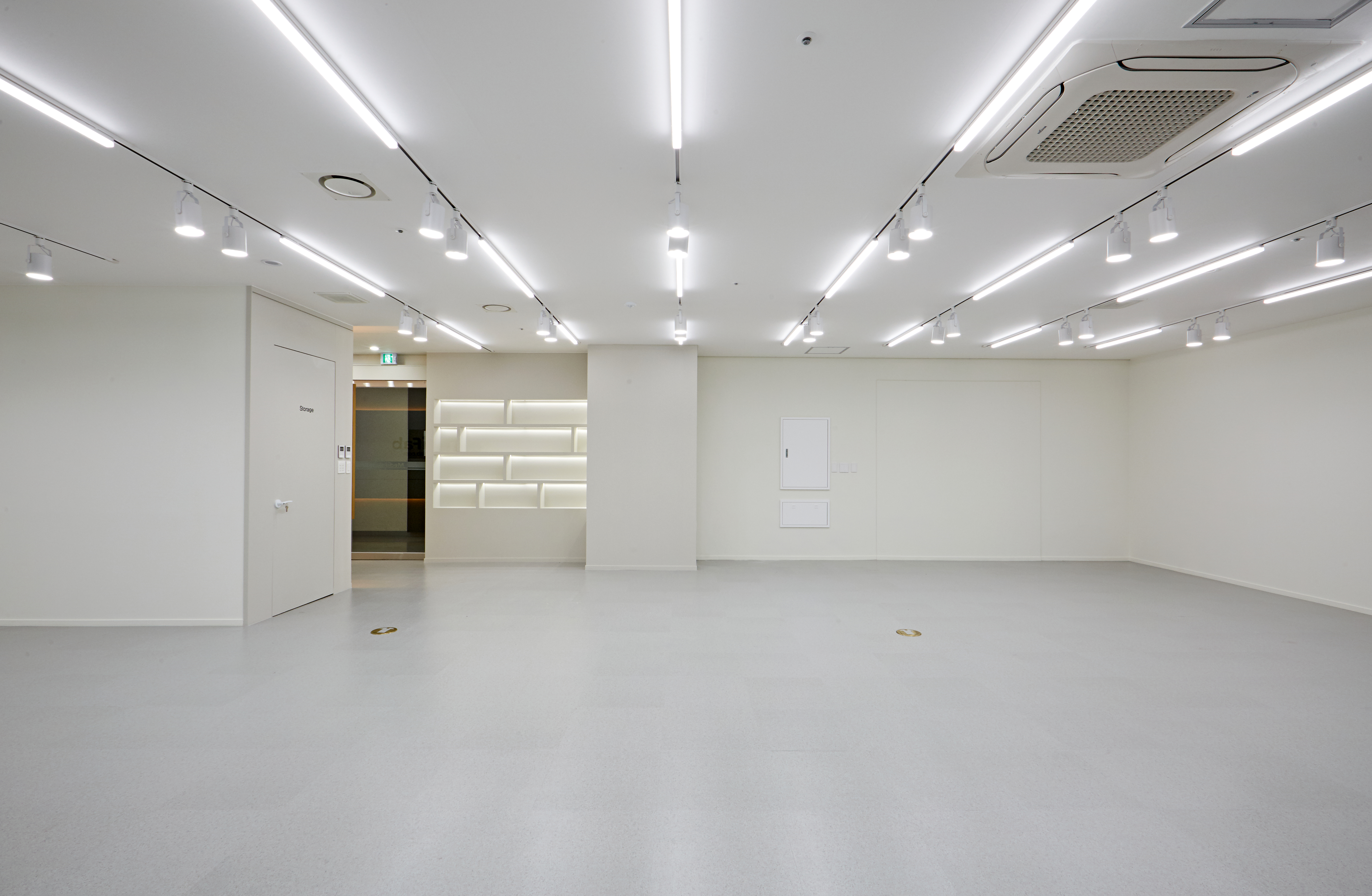 화이트 컬러의 벽면과 그레이색의 바닥재가