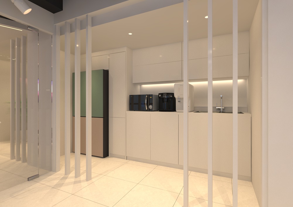 직원들의 휴식과 간단한 미팅이 이루어지는 탕비실은 기능성과 심미성을 동시에 잡았는데요.
