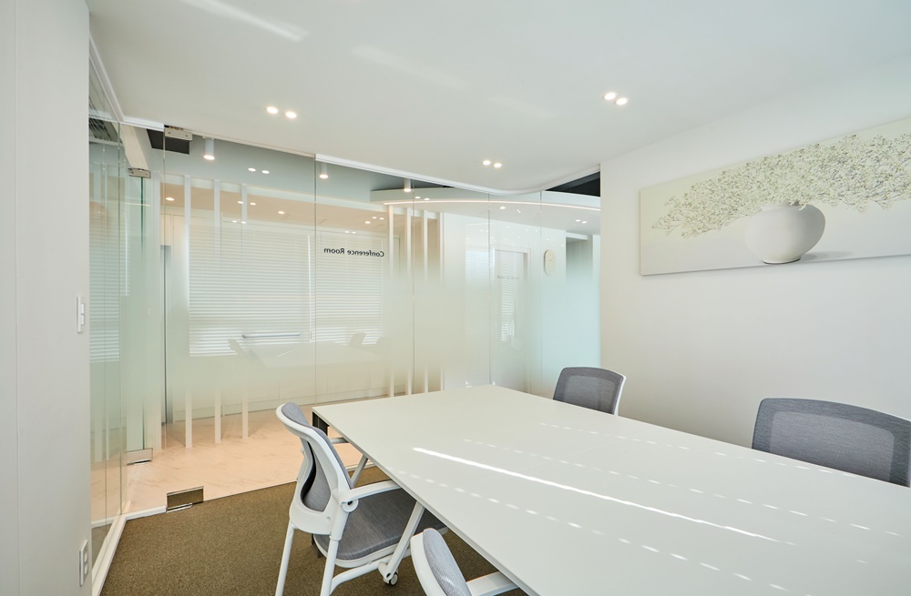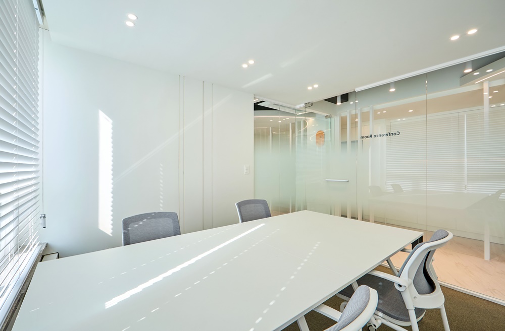 앉아 있을 때는 외부의 시선을 차단해 회의의 기밀성을 유지하고, 일어섰을 때는 내부 전체가들여다보여 답답함을 해소하는 강남인테리어만의 디테일한 설계입니다.