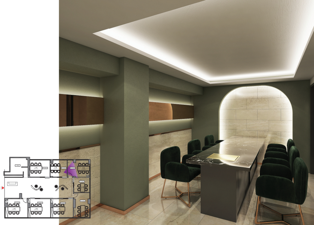 로비와 동일하게 그린&골드 컬러로 포인트를