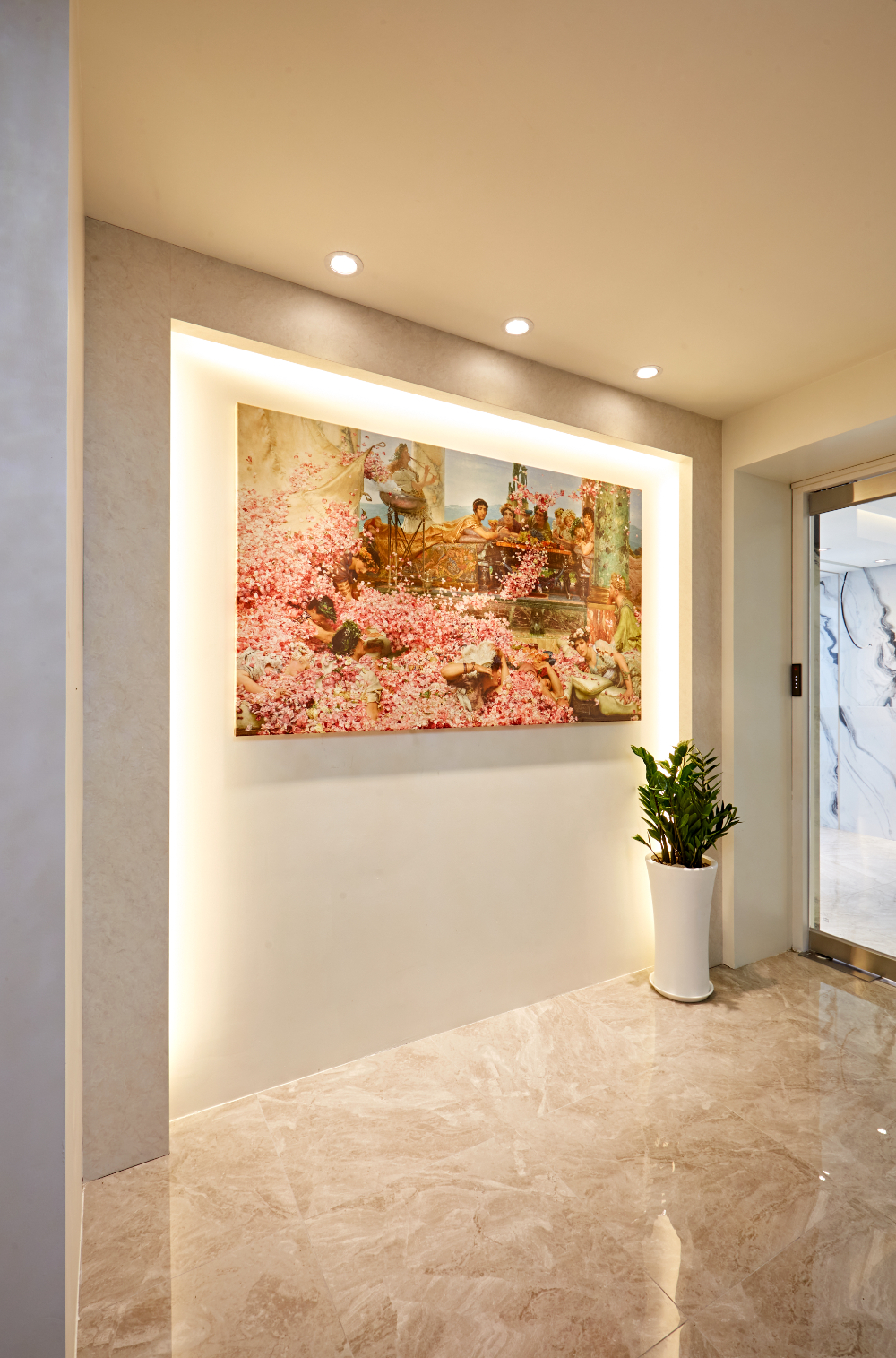 바닥 마감재와 벽면 그림, 그레이 컬러 등
