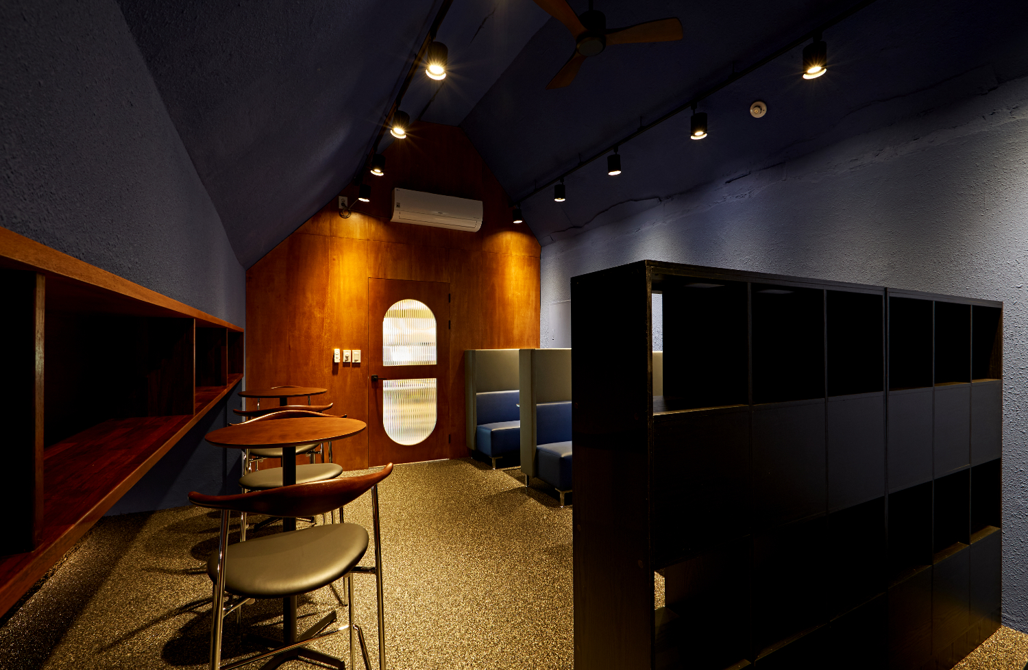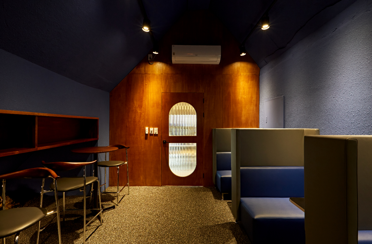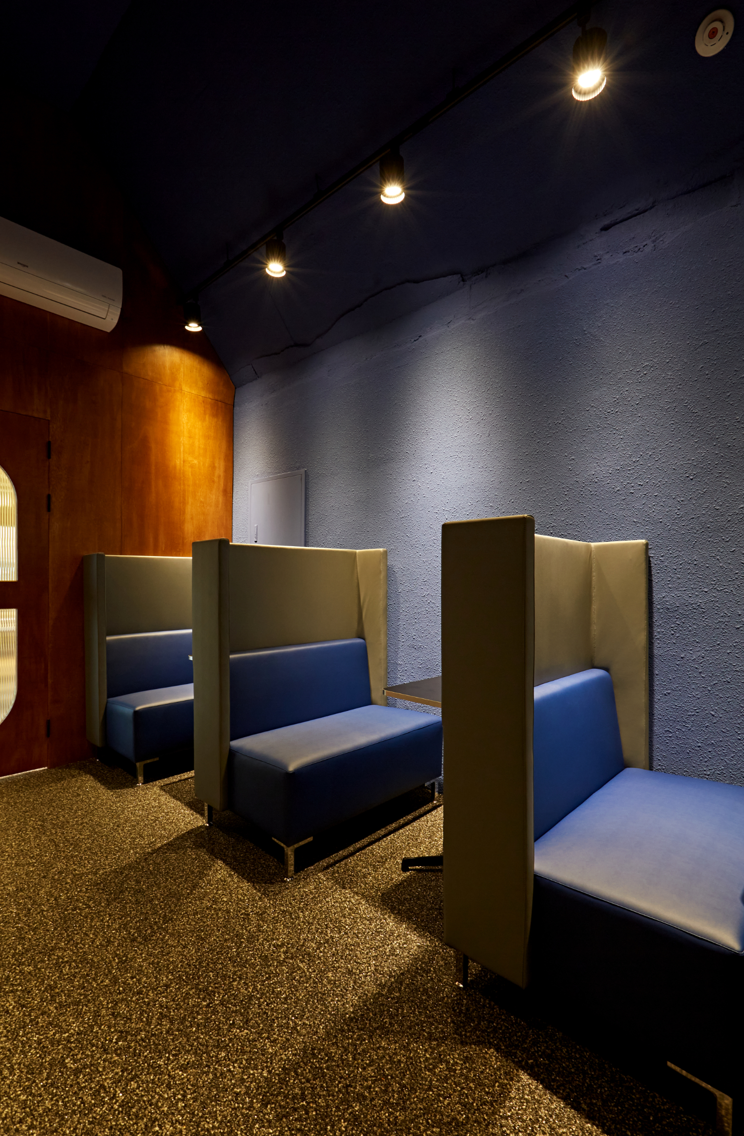 또 다른 비밀 공간에서는 각자 조용히 업무를 보거나 집중하고 싶을 때, 간단한 미팅을 하기 위한 용도로 만들어진 곳인데요. 은은한 다운라이트 조명이 곳곳을 비추고 있으며 좌석의 형태가 다양해 취향에 맞는 선택이 가능했습니다.