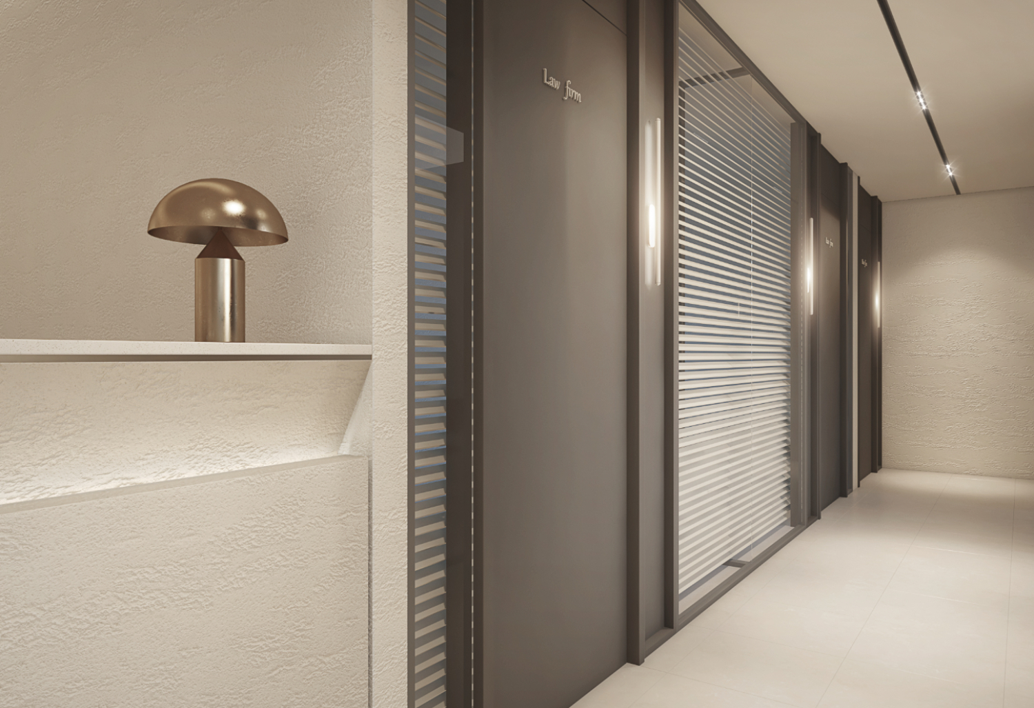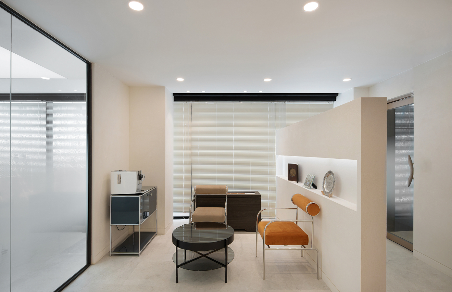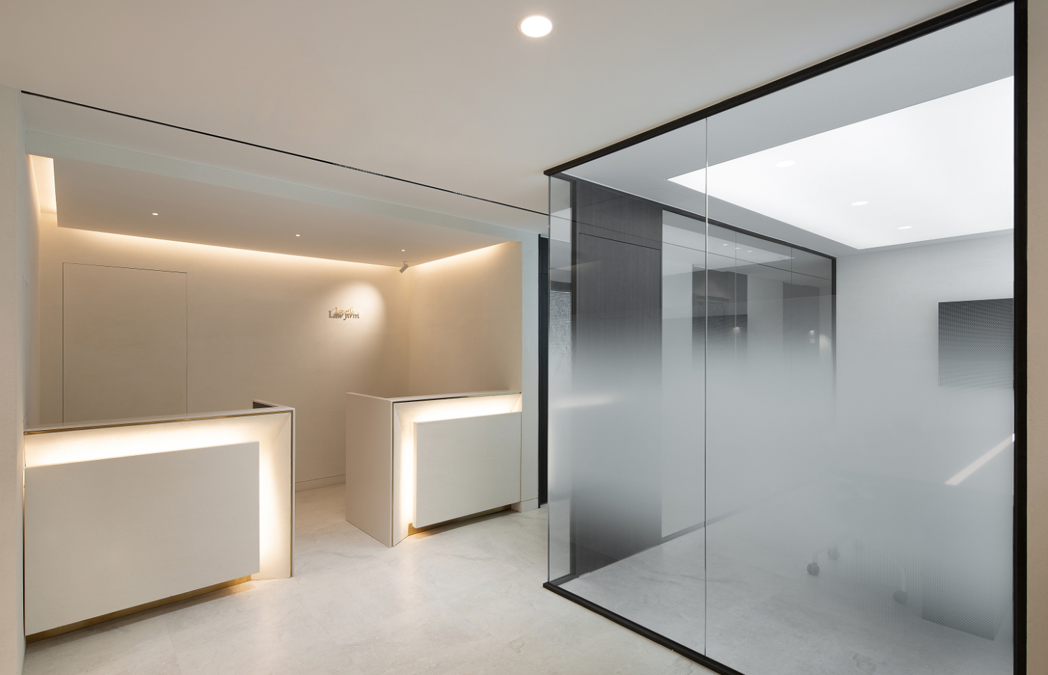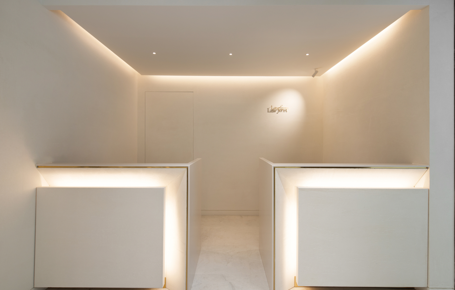 또한 찾아오는 의뢰인들로 하여금 신뢰감을 가질 수 있도록 깔끔하면서도 전문적인 느낌을 내고 고급스러움을 잊지 않기 위해 곳곳에 럭셔리한 소재를 활용했습니다. 그리고 군더더기 없는 마감과 밝은 조명, 따뜻한 색감을 이용하면서 분위기를 차갑지 않고 마음 편안히 만들 수 있는 곳으로 연출했습니다.