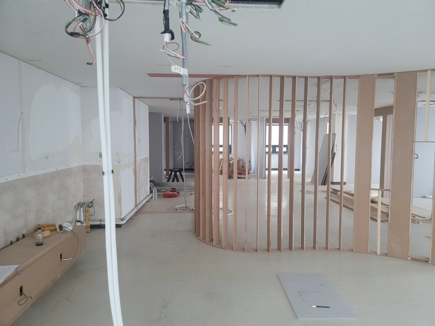 복도는 목공 작업으로 라운드 타입의 가벽을