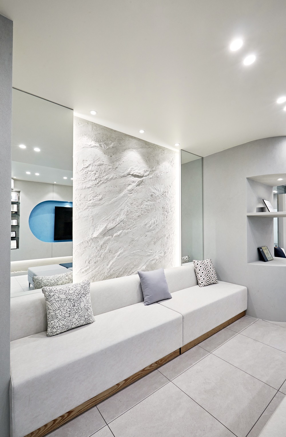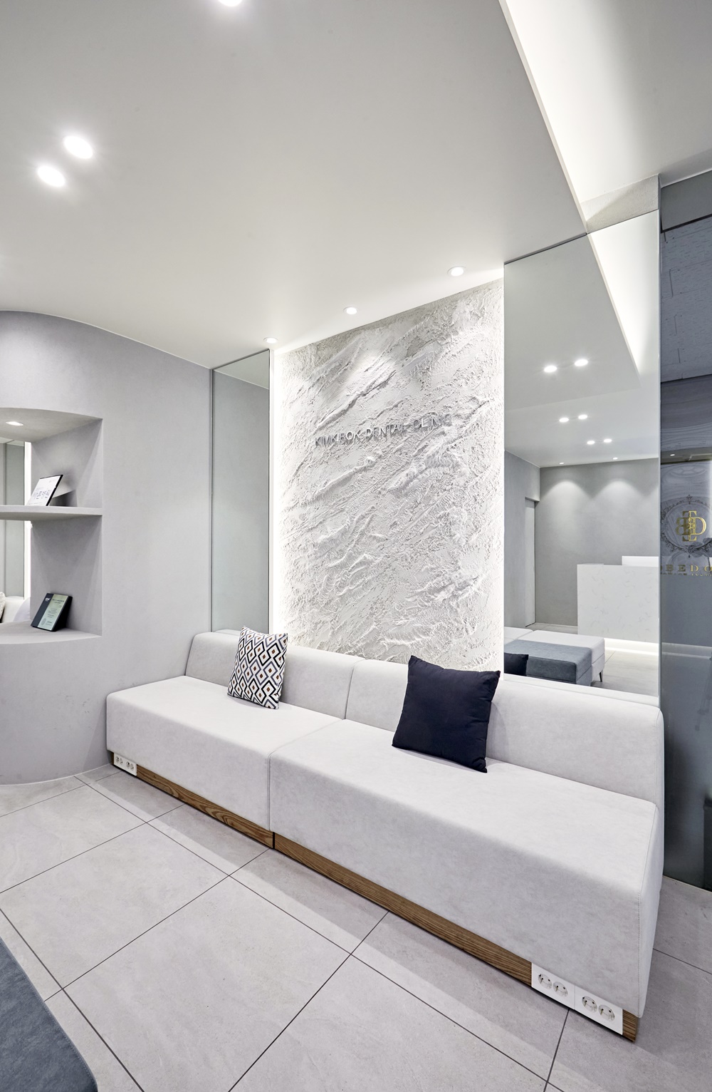 강동구 치과 리모델링에서는 병원의 브랜드 이미지와 환자들의 심리적 안정감을 모두 고려하여 다양한 디자인 요소를 활용했습니다.