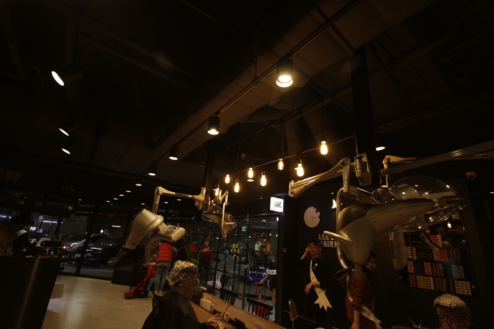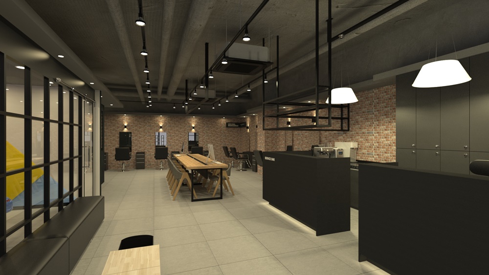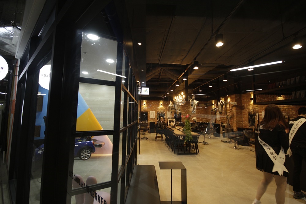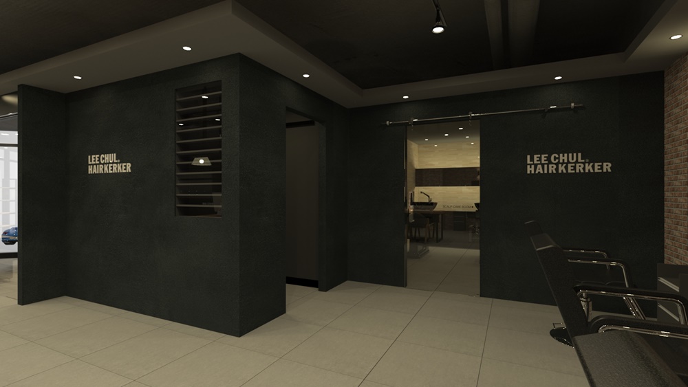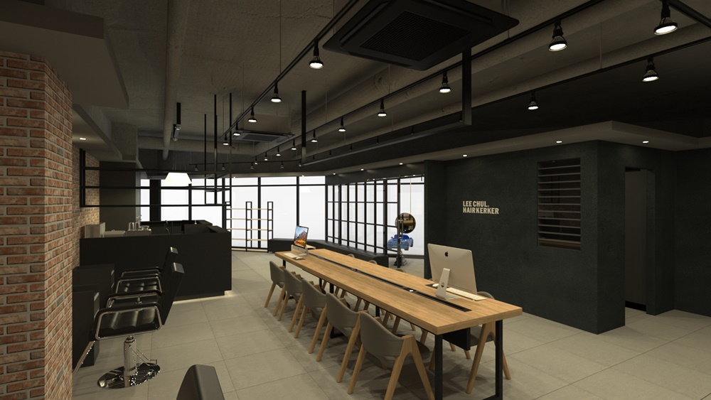 블랙톤을 주된 색상으로 한 이번 프랜차이즈 헤어샵은 현대적인 인테리어 트렌드를 반영하여 디자인되었어요.