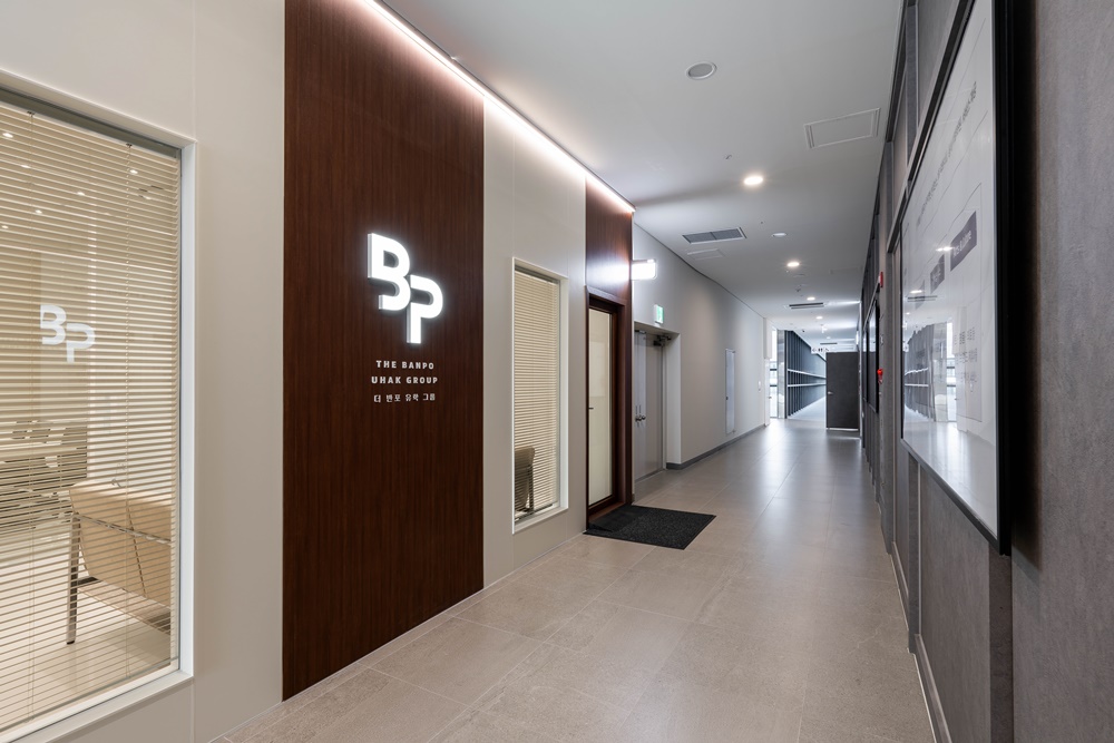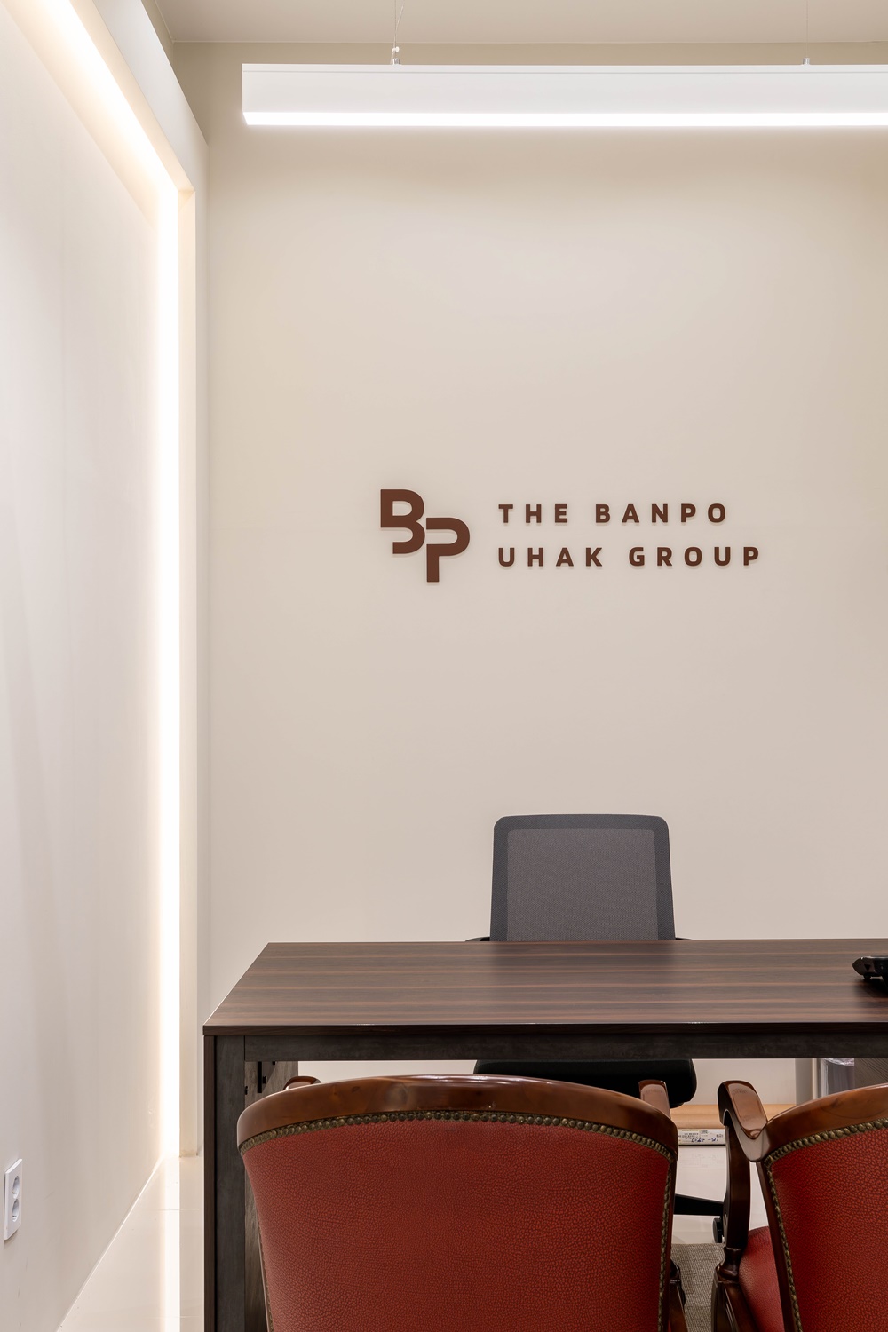묵직한 딥우드 톤의 아트월 위에 화이트로 발광하는 'BP' 심볼 로고는 마치 명품관에 들어서는 듯한 압도적인 첫인상을 선사하는데요.