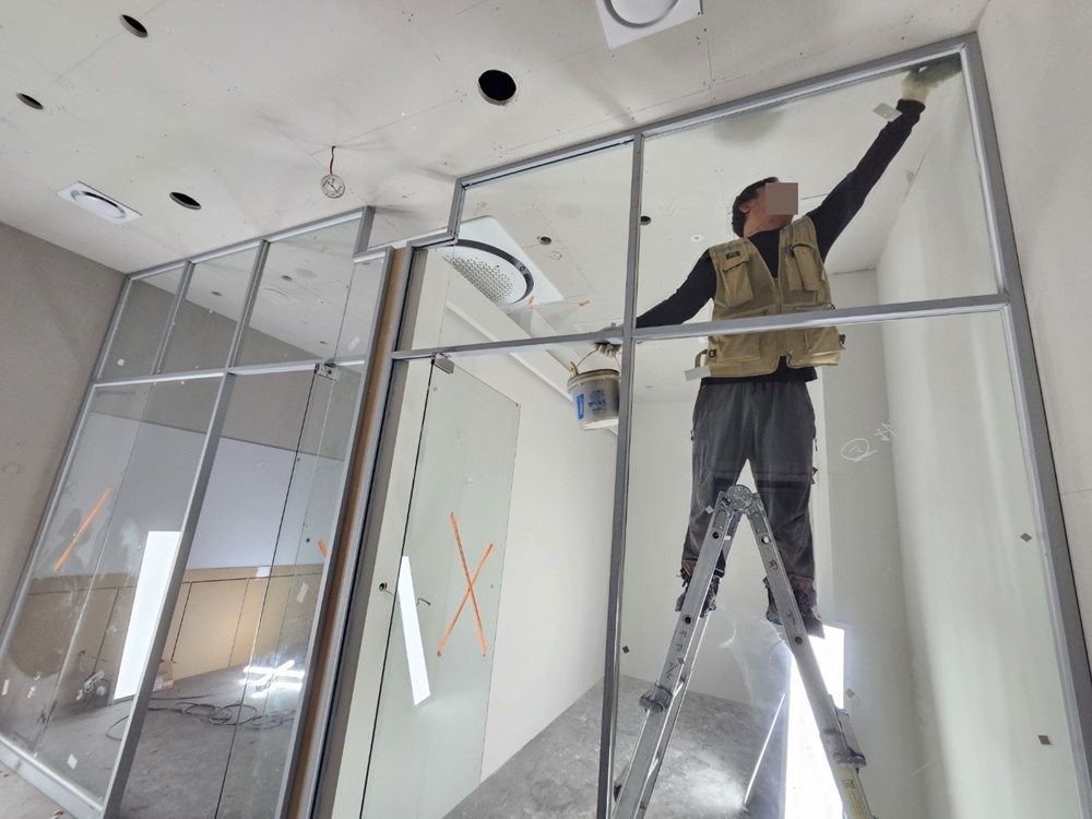 또한, 유리 파티션이 설치될 자리는 금속 프레임의 고정력을 높이기 위해 바닥과 천장 보강 작업을 선행하였고, 전기 배선 작업 시에도 각 상담실의 개별 냉난방 및 전열 부하를 계산하여 안전성을 최우선으로 고려했답니다.