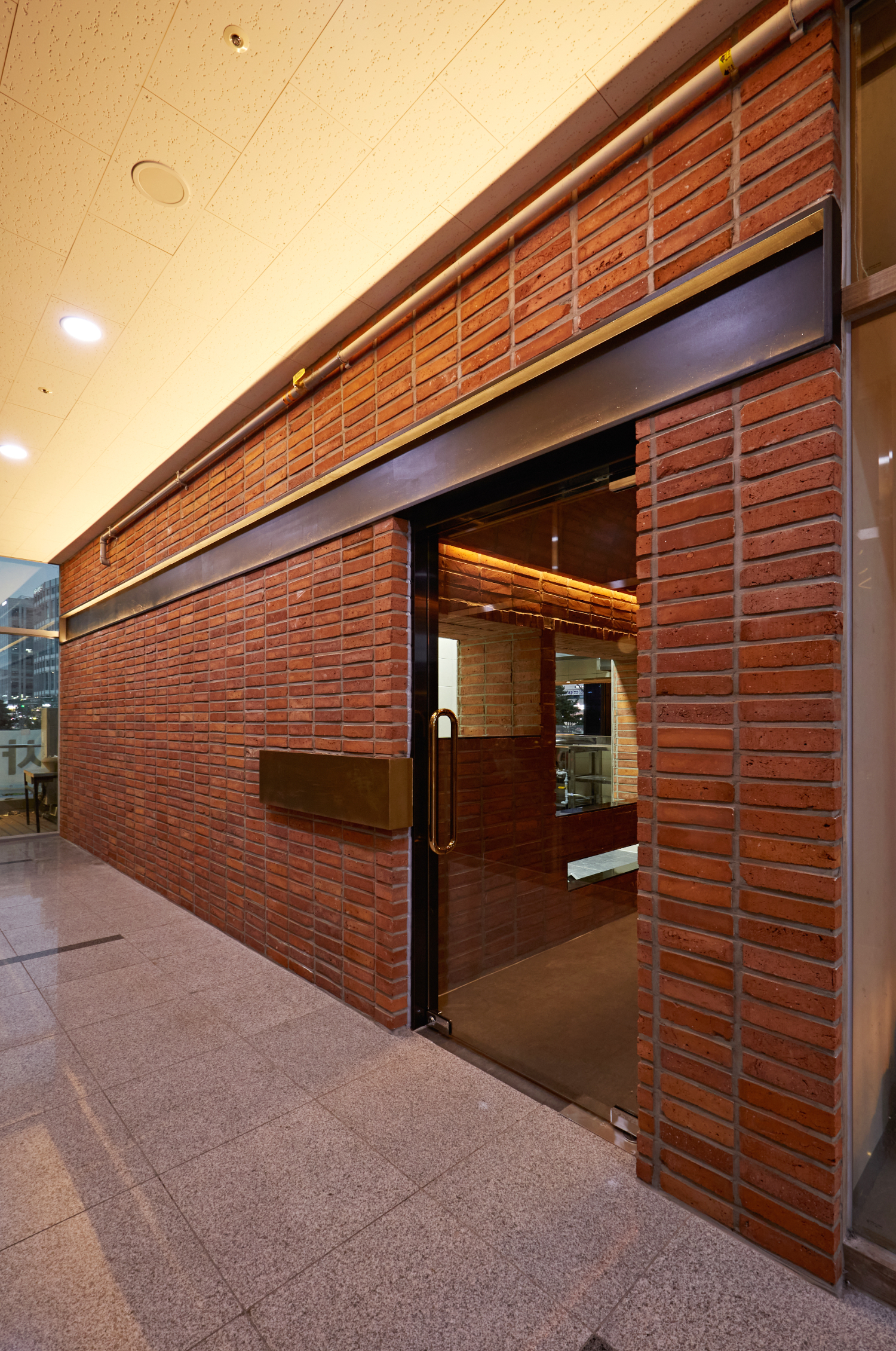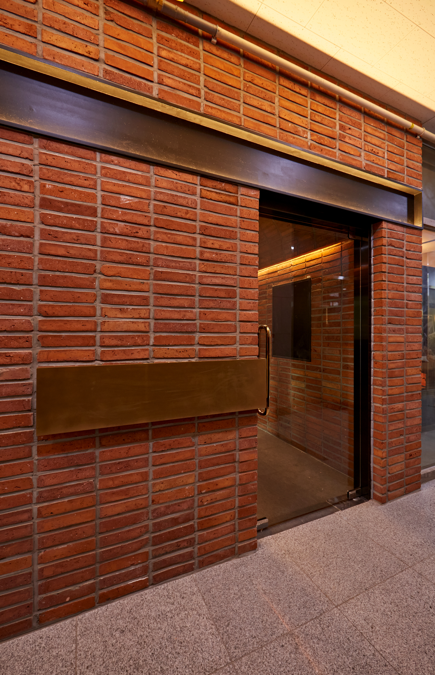 입구에서부터 컨셉의 방향성이 확실하게 느껴지는 이번 현장은 붉은 벽돌로 물들인 색감이 매우 아름다운데요. 또한 어둡고 고혹한 느낌의 목재와 골드 컬러의 조화로 고급스러움을 더했습니다. 마치 옛날 유럽에 나올법한 느낌을 내면서 입장할때부터 럭셔리한 무드를 이어나갈 수 있도록 만들었는데요. 공간에서의 첫 인상은 외관과 들어가는 입구에서 결정된다는 것을 너무나도 잘 알고 있기에 세심한 노력을 기울였습니다.