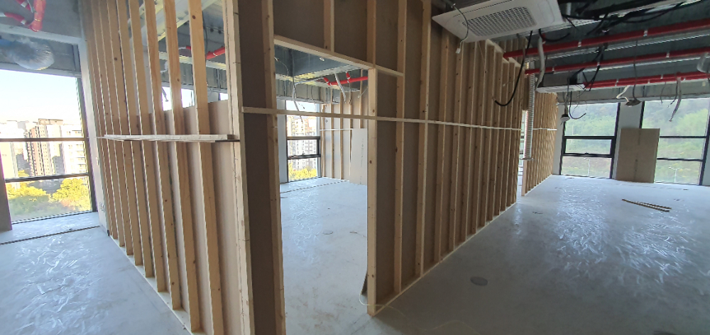 이번에는 목조로 가벽을 세우기도 했지만, 유리가벽으로 진행된 경우도 많았기에 각각의 용도와 위치에 맞는 시공이 이루어졌습니다. 어떤 재료로 진행하던 가장 중요한 것은 튼튼한 마감처리이기 때문에 이도 놓치지 않았는데요.