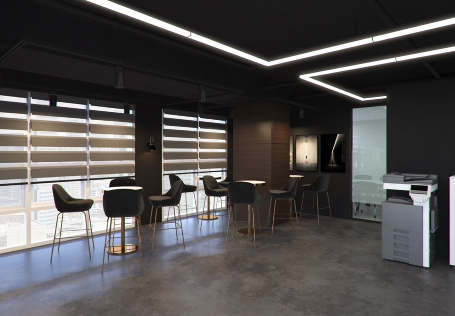 또한 이번 강서구 사무실인테리어 아벨테크노 지식산업센터 인테리어현장은 특이하게 사무 공간과 카페테리아 공간이 서로 함께 어우러지는 분위기를 택했습니다. 자율적인 분위기를 강조하려는 회사의 이미지를 담아내었으며 창가를 기분으로 카페테리아가 마치 고급 호텔 바 같은 분위기로 설계된만큼 아름다운 모습을 자랑하는데요.
