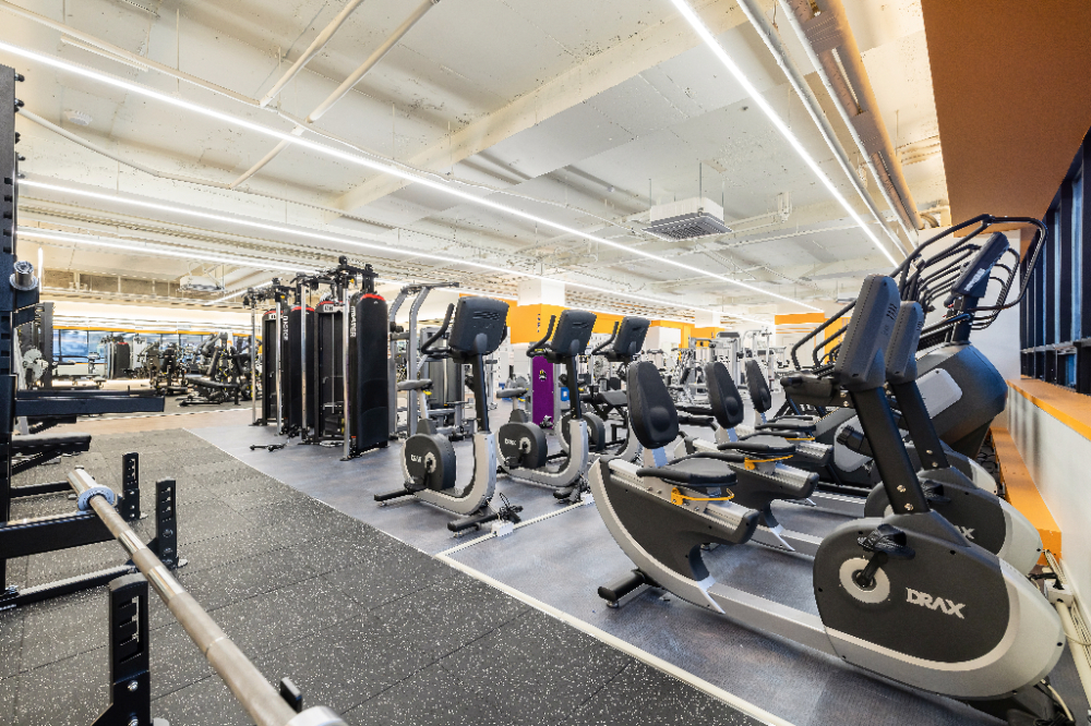 스트레칭존과 일반 유산소 및 운동하는 곳은 바닥의 색상으로 구분할 수 있는데요. 색깔의 대비가 확연하게 달라지면서 다른 용도의 공간임을 인식할 수 있도록 도와드렸습니다.