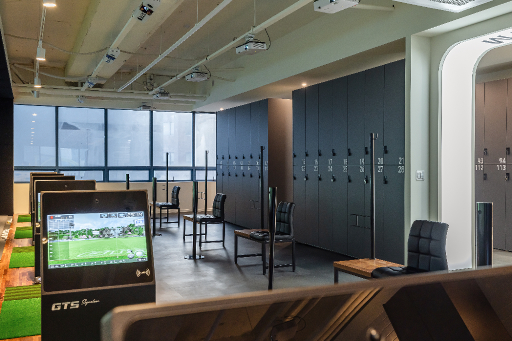 무엇보다 전체적으로 헬스장인테리어보다는 한 톤 낮춘듯한 색감이 느껴지실텐데요. 골프는 집중해서 하는 스포츠인만큼 시선이 분산되거나 산만해지지 않도록 어두운 컬러를 사용하였습니다.
