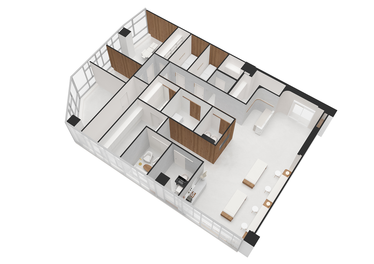 클라이언트의 요구사항을 반영하여 대기실, 상담실, 진료실, 레이저실, 주사실 등