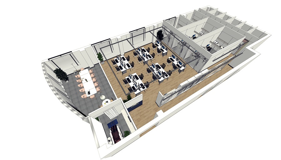 오늘은 강서 마곡 메가타워 사무실인테리어를 계획 중이신 분들을 위해 오피스 공간분리 3d 디자인으로 제안드린 설계를 공개합니다. 사무실은 대형 면적이든 소형 면적이든 효율적으로 구성하지 않으면 사용성과 편의성이 저하되고 그로 인해 업무 능률이 떨어질 수 있어 세심하고 디테일한 계획이 필요합니다. 오늘 소개해드릴 평면은 길다란 직사각형이지만 한쪽이 곡선으로 이뤄진 사무실로 휴게실, 공용 사무공간, 대표실, CS 룸 등을 구성했습니다.