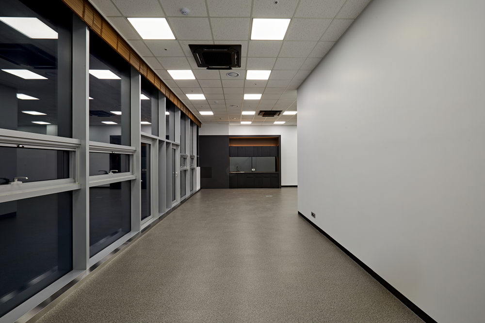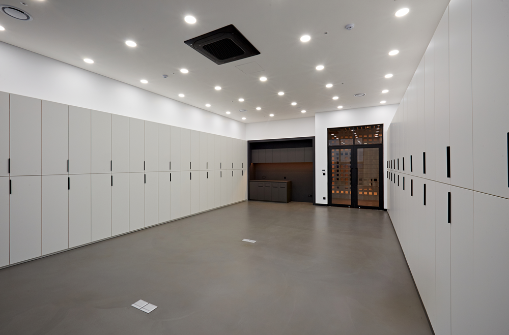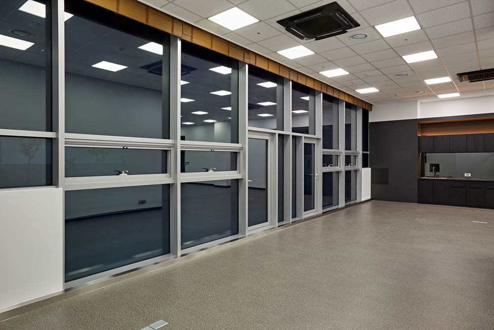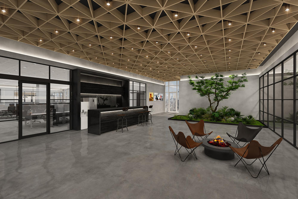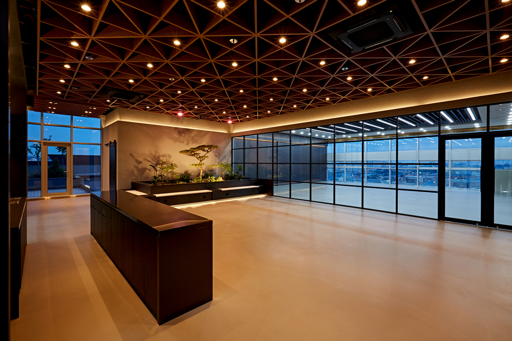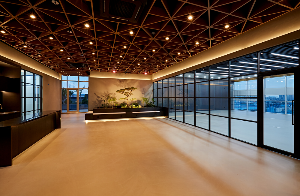 대형 오피스 내부에는 직원들을 위한 휴식 공간, 회의실, 카페테리아 등