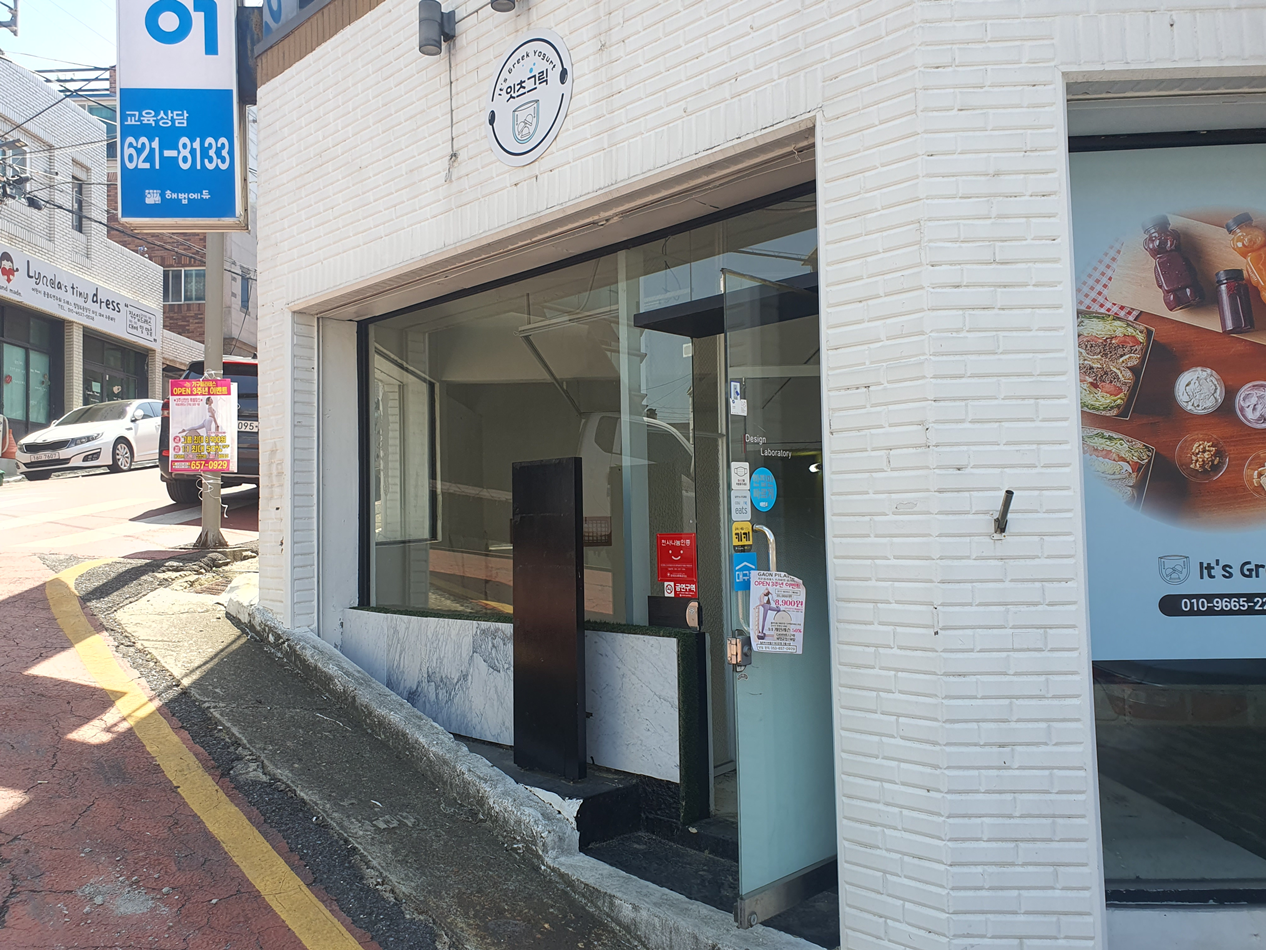 일반적인 화이트톤 페인트 벽돌로 마감되어 있어 주변 상가들 사이에서 크게 눈에 띄지 않은 외관이었습니다.
