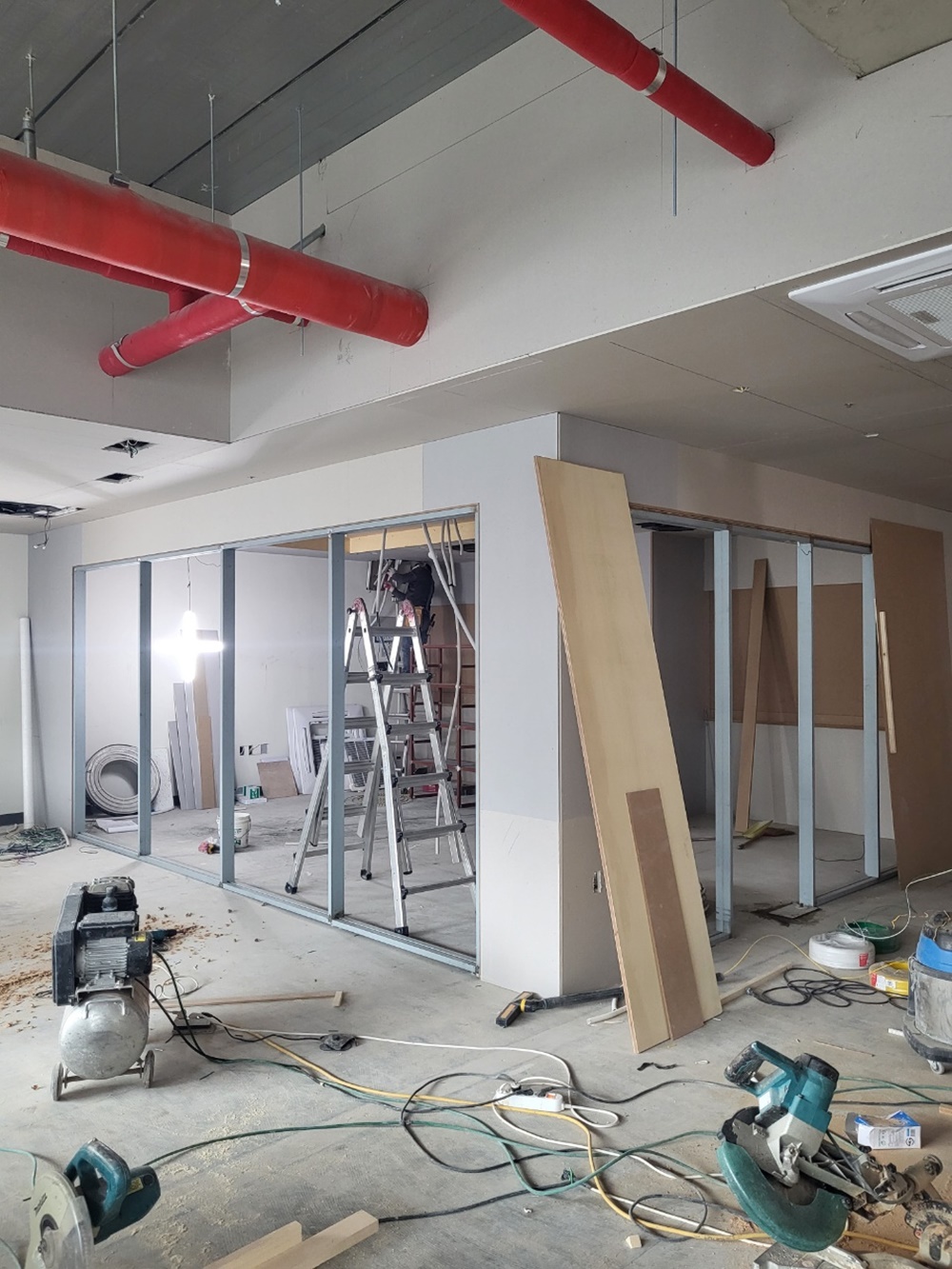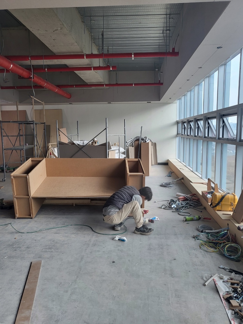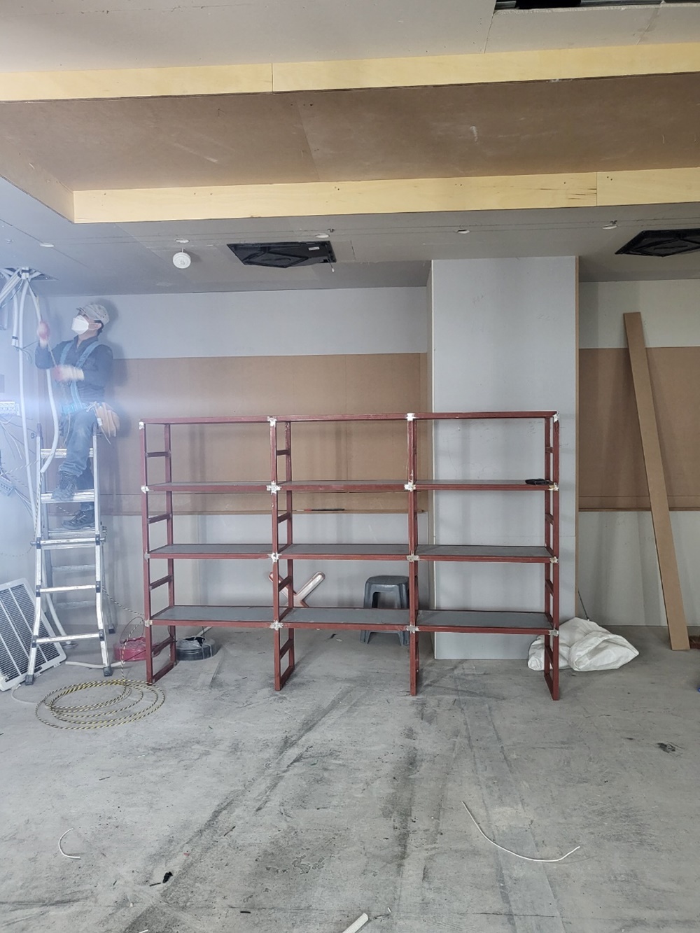 시공팀이 투입되어 벽체, 바닥, 천장 등 다양한 구조물의 변경 작업을 수행해요.