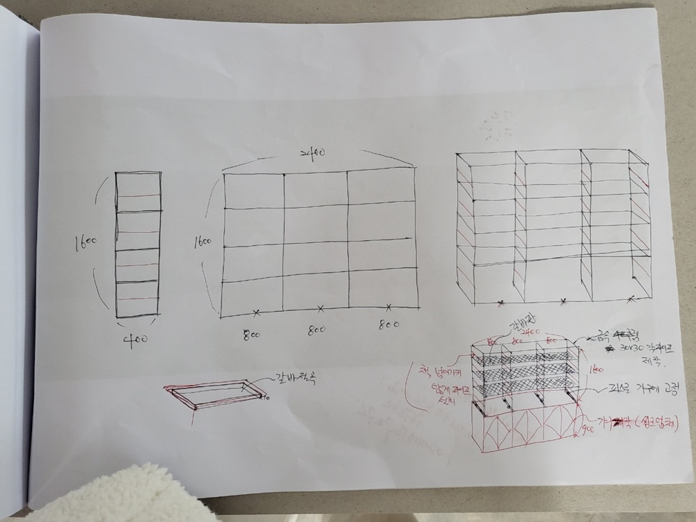 이후에는 기획안을 바탕으로 기본 스케치나 레이아웃을 구상해요.