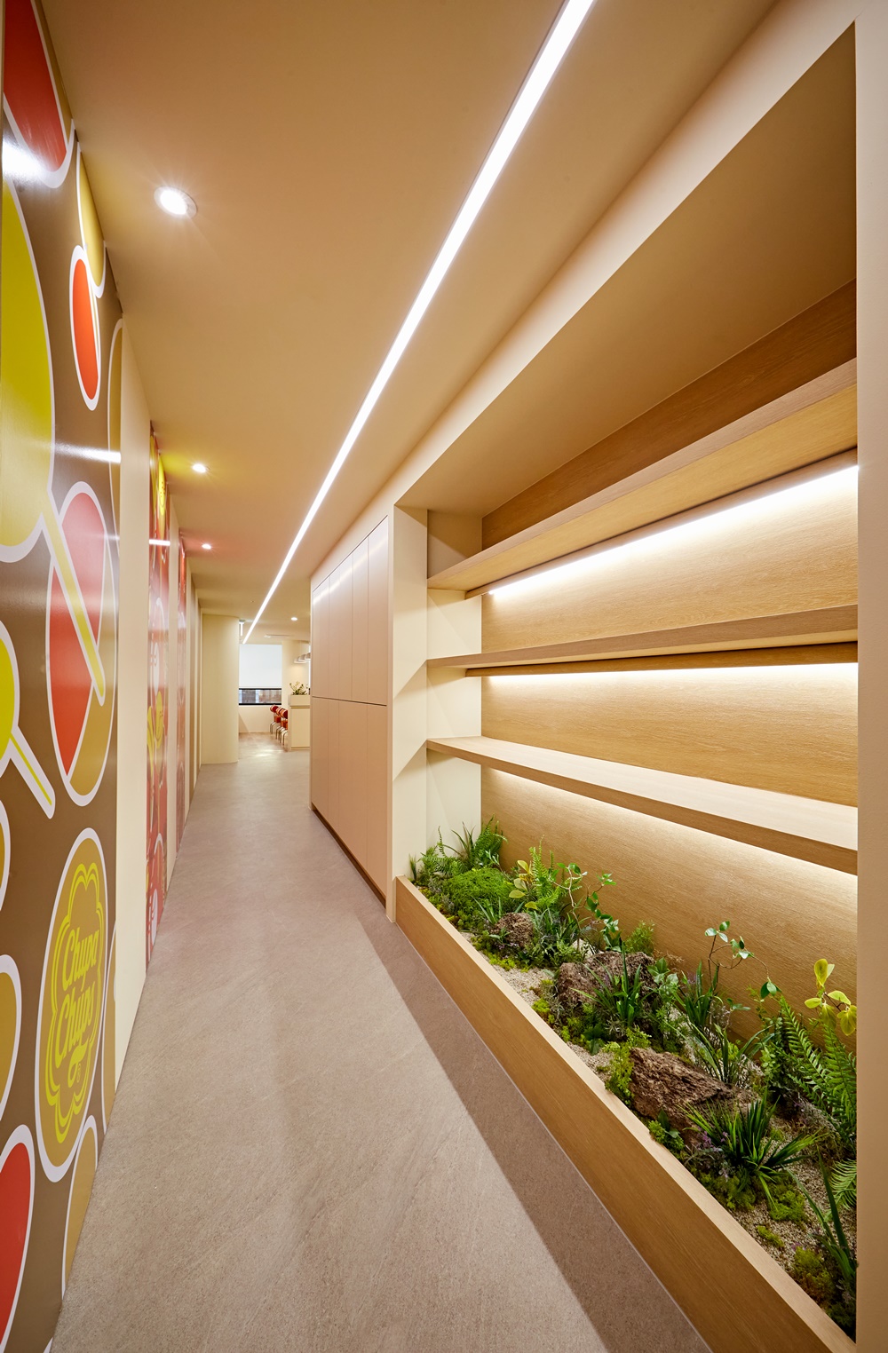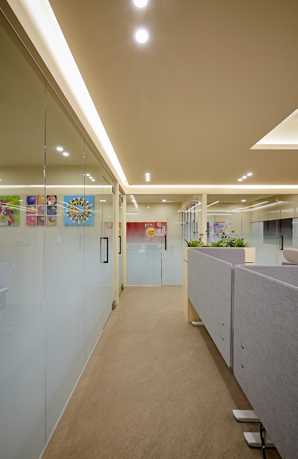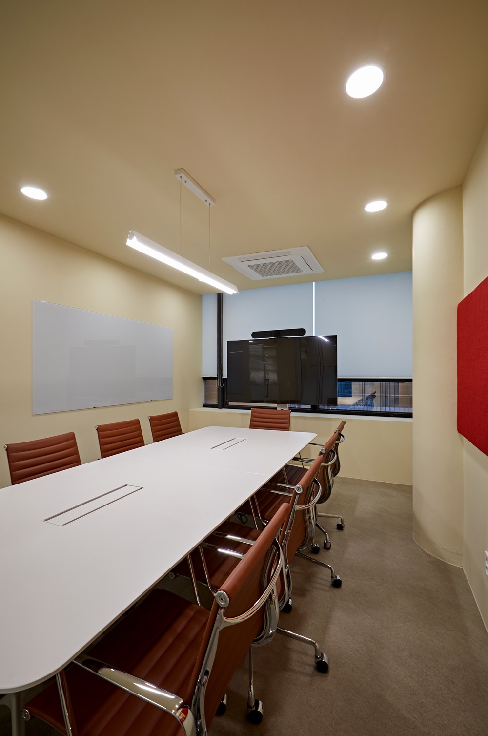 기업의 브랜드 아이덴티티와 맞닿아 있는 톡톡 튀는 컬러는 사무실 내외부 모두에 긍정적인 이미지를 전달하게 만들어요.