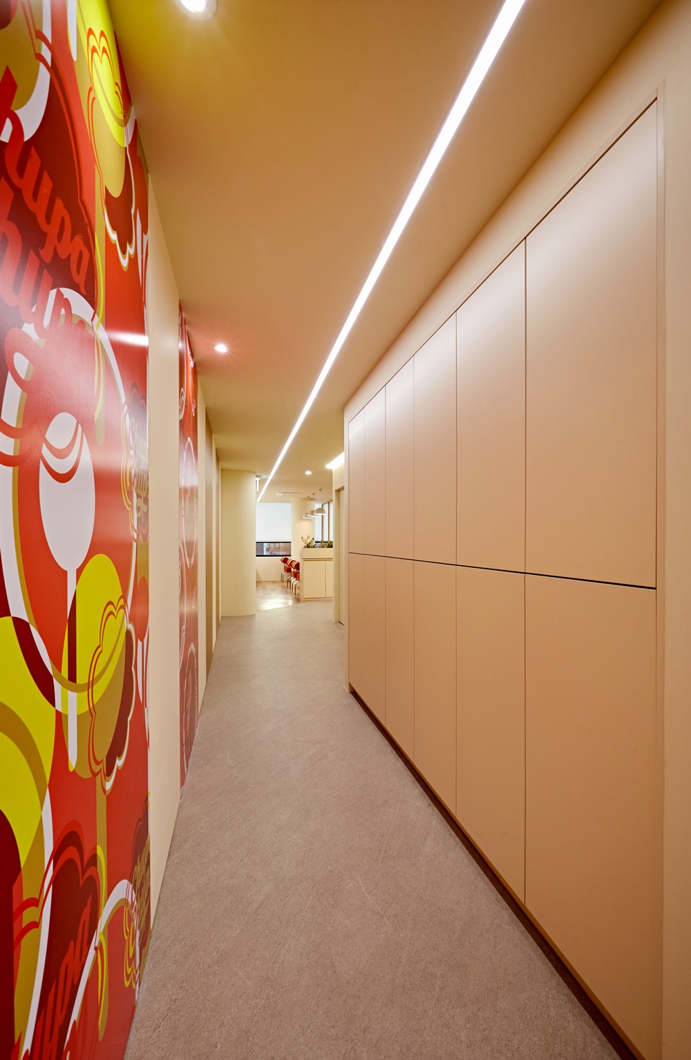 사무실 내에서 반복적인 색상 패턴을 사용하는 것도 독창적인 디자인을 이루는 방법이에요.