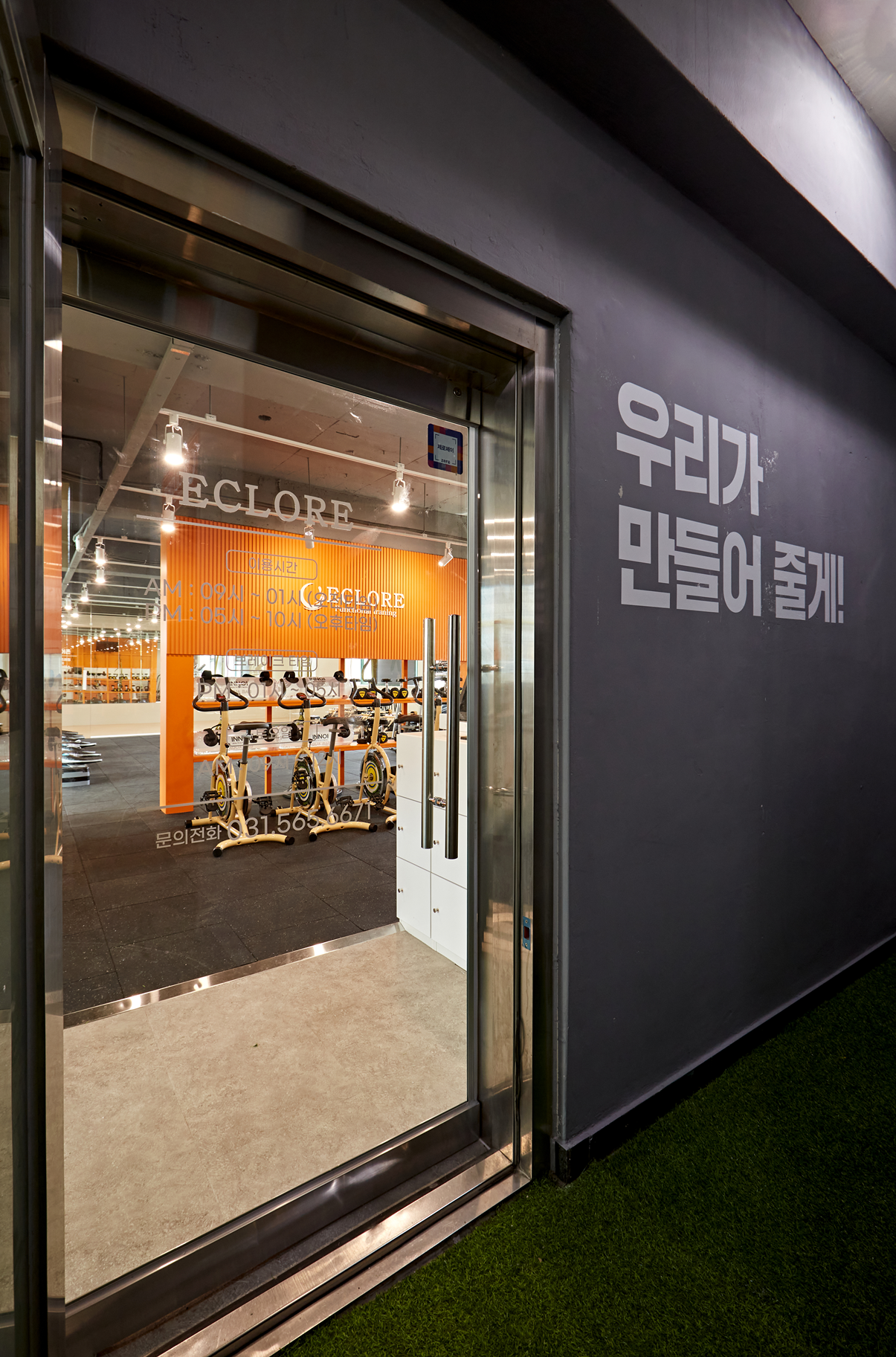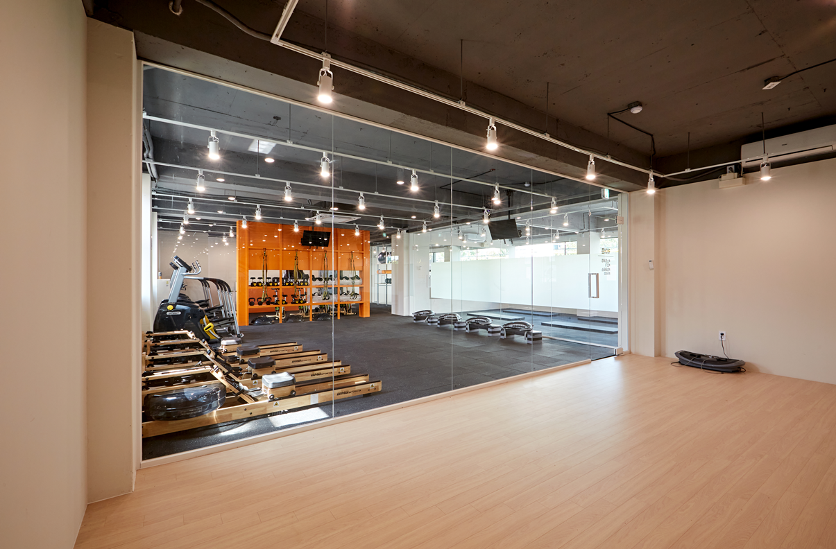 유리 출입문을 적용하여 입장 전부터 운동 에너지가 느껴지도록 하였습니다.