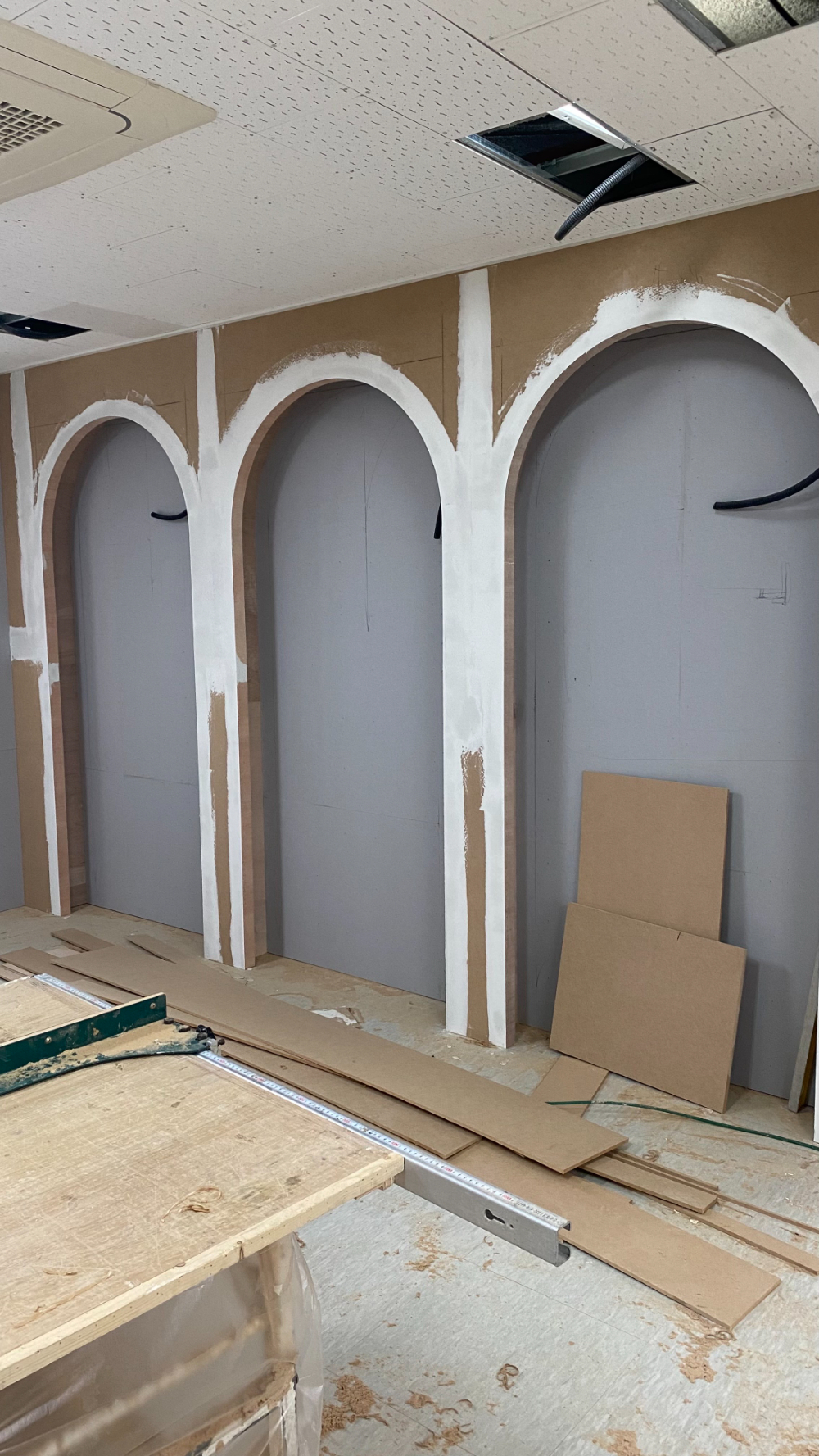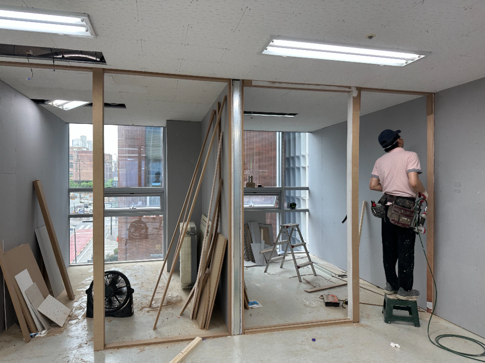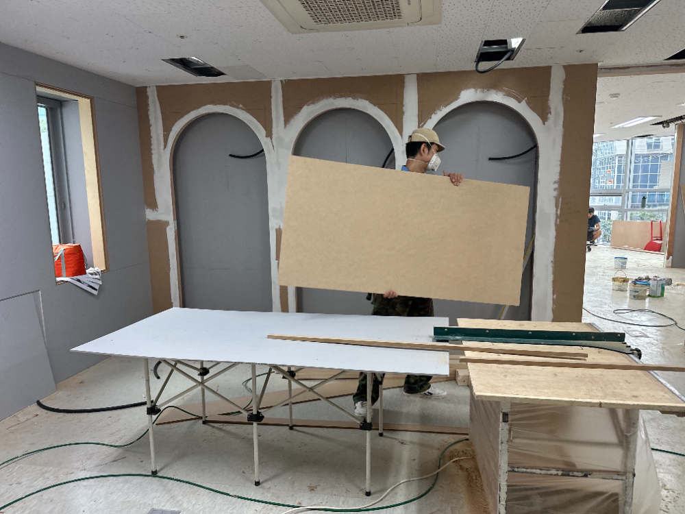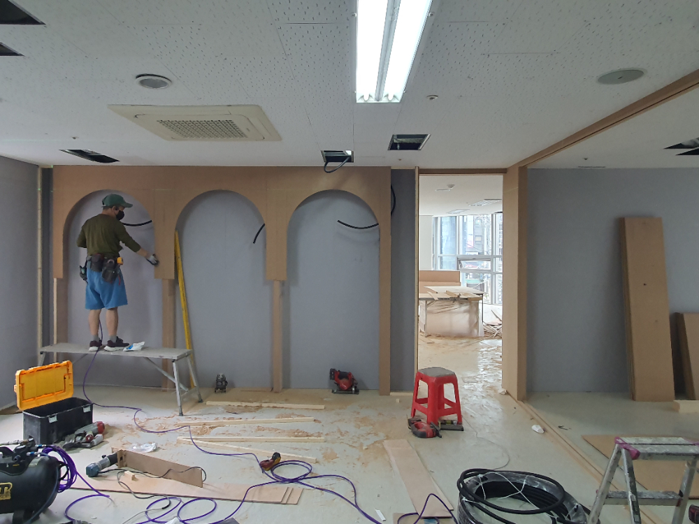 가벽을 세우고, 맞춤으로 모든 것을 미리 배치하여