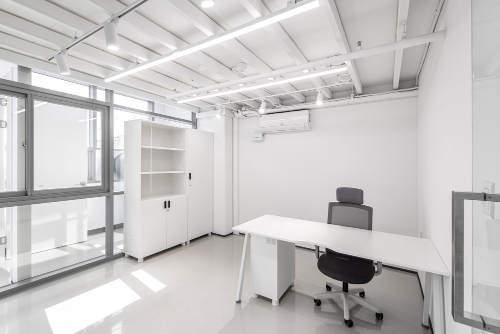 가벽을 지나 안쪽으로 들어오면 탁 트인 개방감이 느껴지는 사무실이 나오는데요. 사무실은 심플하게 화이트 인테리어를
