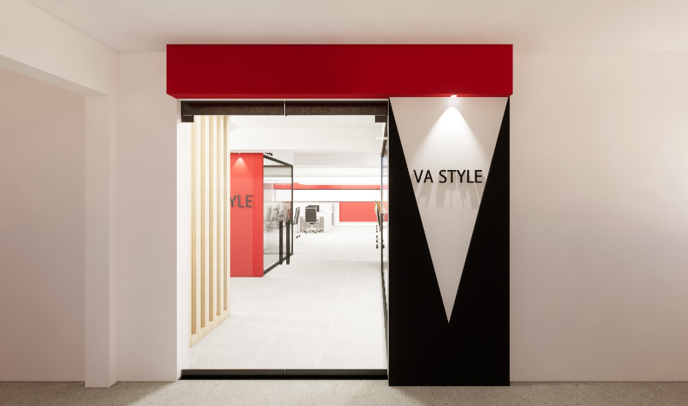 상단에 레드컬러의 바가 돋보이며, 다운라이트 조명을 설치해 아래로 내리쬐는 빛이 마치 무대조명같이 느껴지기도 하는데요. 그래서 오른쪽에 부착되어 있는 로고가 더욱 눈에 들어오는 효과를 연출합니다.
