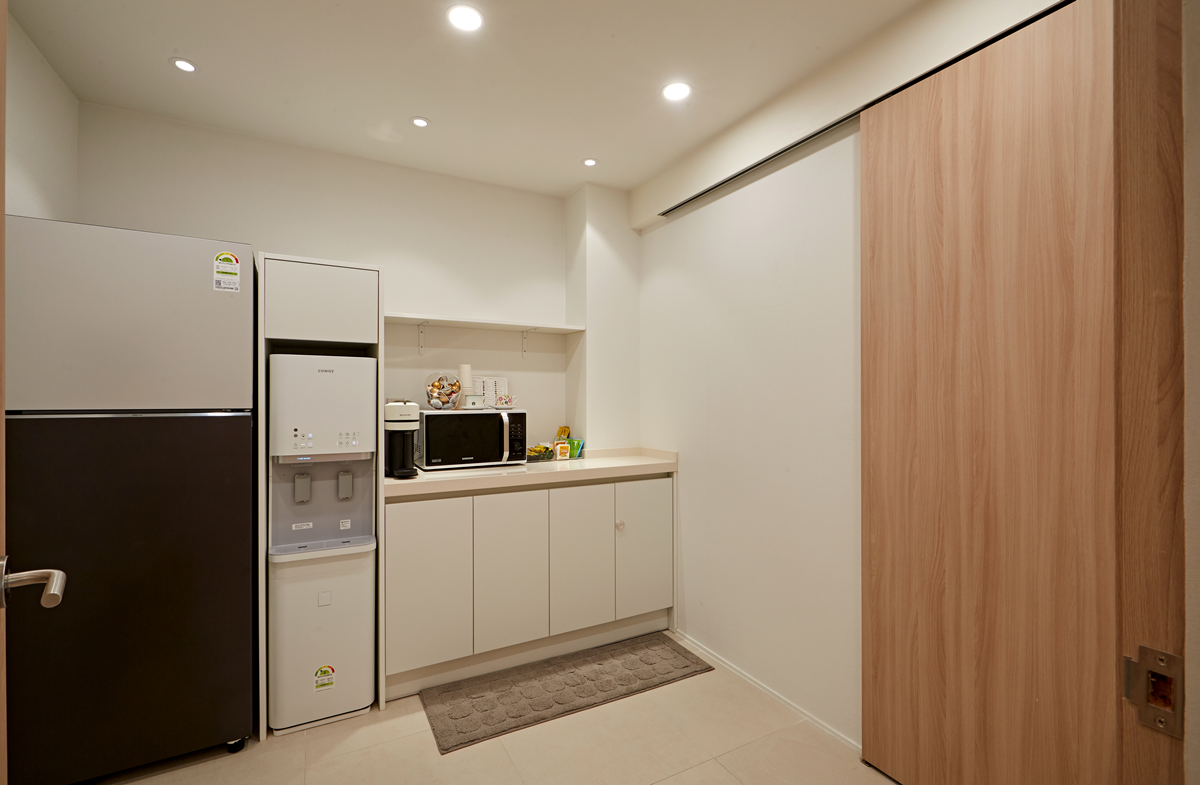 또 한쪽에는 커피머신과 간단한 다과를 준비하여 이용할 수 있도록 했습니다.
