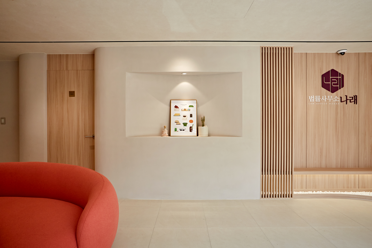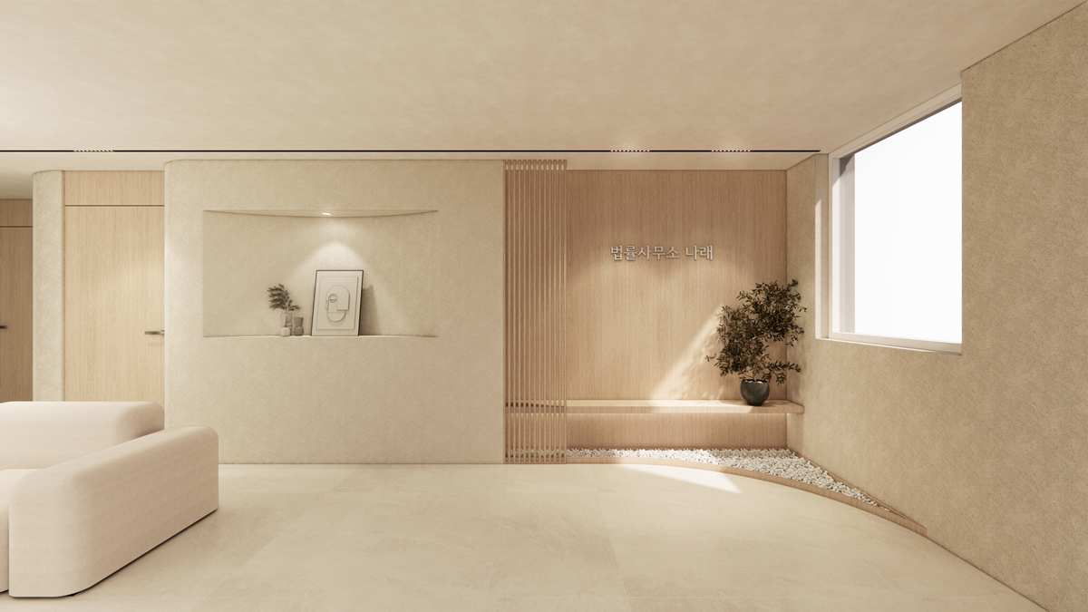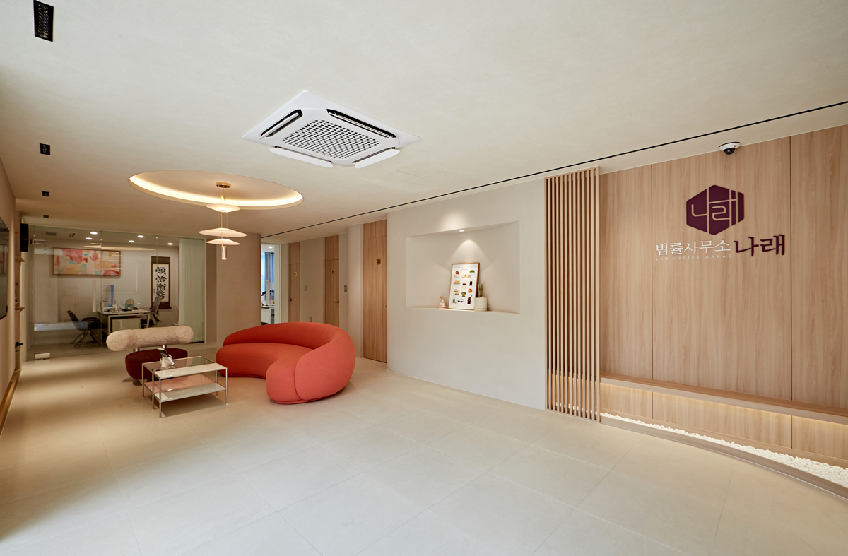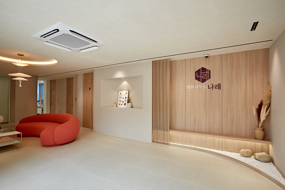 법률사무소의 특성상 신뢰성과 안정감을 줄 수 있는 분위기 조성이 중요하기 때문에 모던하면서도 차분한 컬러를 주로 활용 하였고, 우드 소재를 포인트로 사용하여 편안한 느낌을 더했습니다.